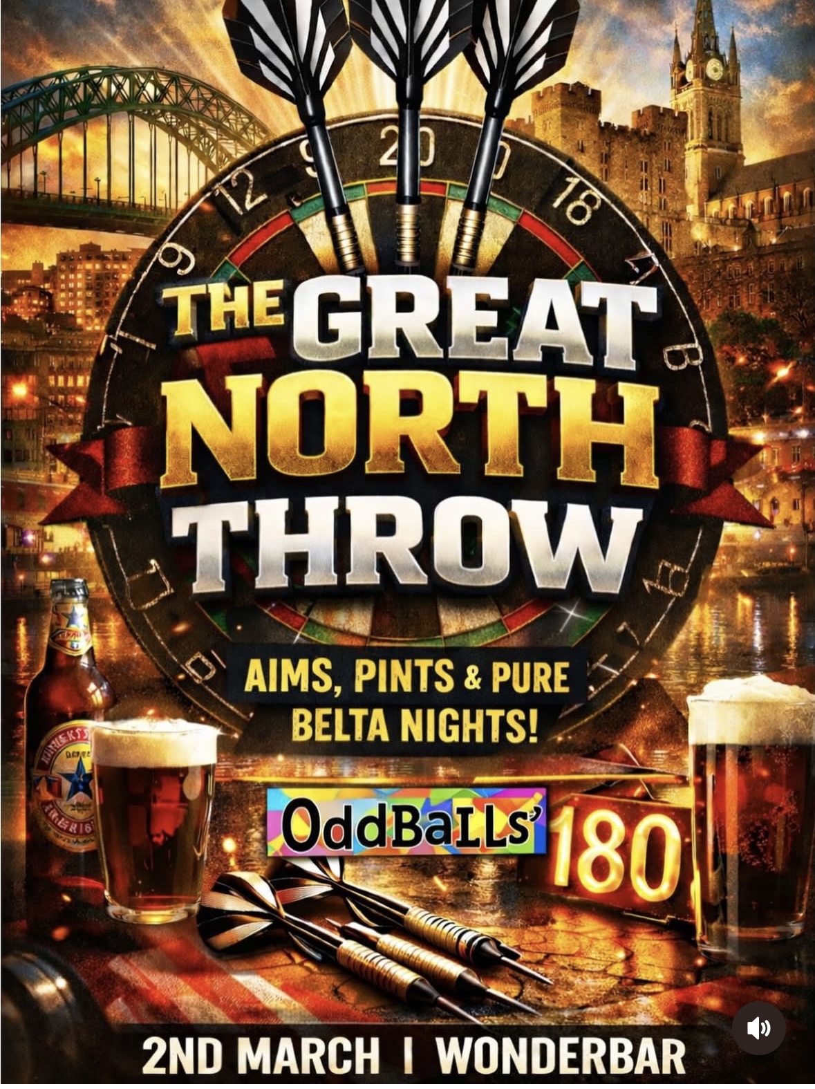 A charity darts night at Wonderbar Newcastle, raising funds for Oddballs Foundation. Join us for competitive darts, cheap drinks, and a great atmosphere. The event starts at 7 pm on the 2nd of March 2026