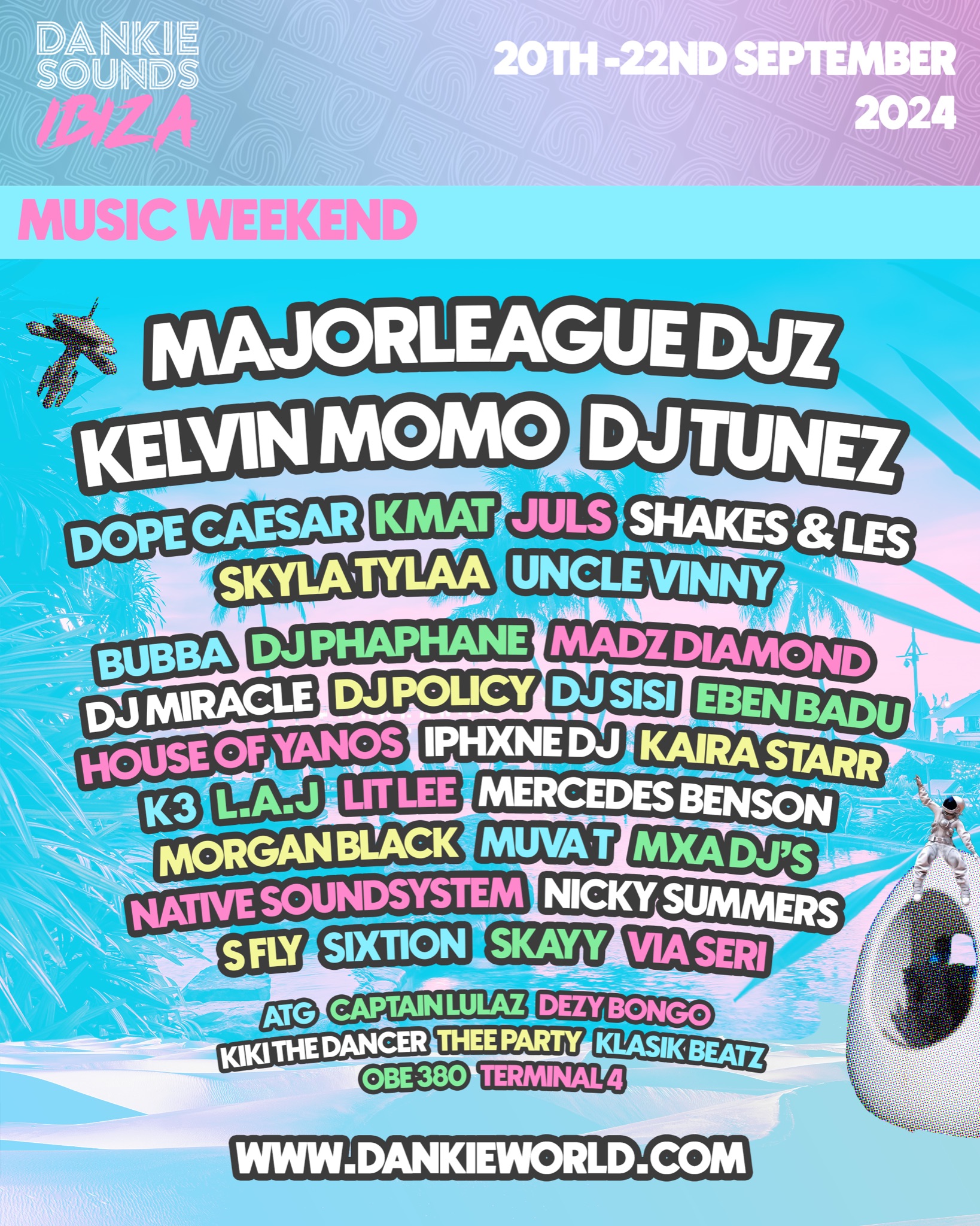 It's that time again for Dankie Sounds to pack their bags and head to the island of Ibiza to close off the Summer!Get ready for the ultimate amapiano, afrobeats, and afrohouse experience on the party island of Ibiza at Dankie Sounds Ibiza 2024 Weekend!