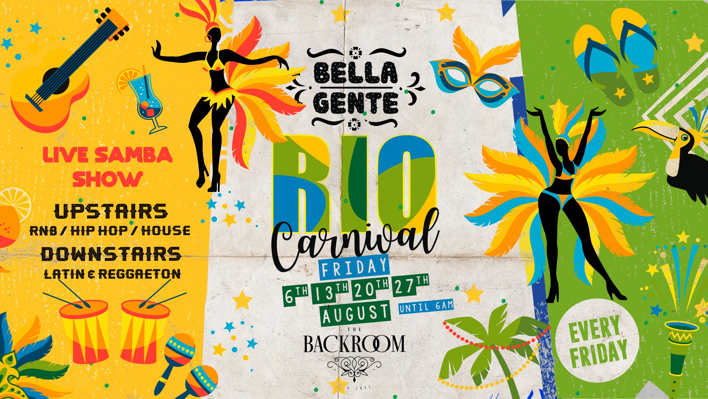 Est. 2013, Leeds' Biggest Fiesta returns and after a sell-out opening fiesta we bring a taste of Rio Carnival to Leeds every Friday in August!