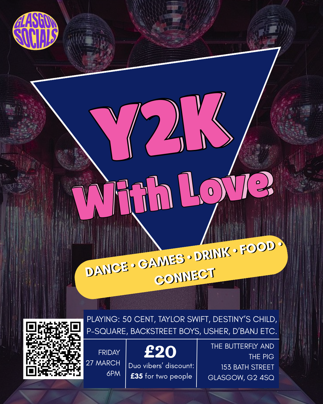 Step back into the vibes of the early 2000s with Y2K With Love, an event where nostalgia meets good times! Think cool tunes, low-rise fits, unforgettable bops, retro style, and all the fun from the early 2000s.