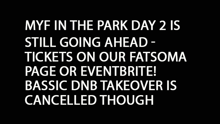 MYF In The Park Day 2 is STILL GOING AHEAD.... at their festival site next to Bournemouth Airport! BUT... BASSIC's DnB Takeover is Cancelled!