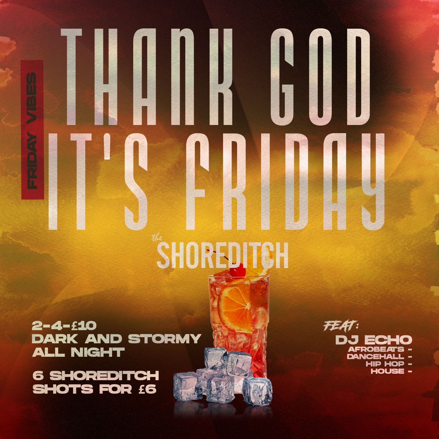 YOUR WEEKLY DOSE OF CELEBRATING THE START OF THE WEEKEND! Each & every Friday at The Shoreditch Bar!