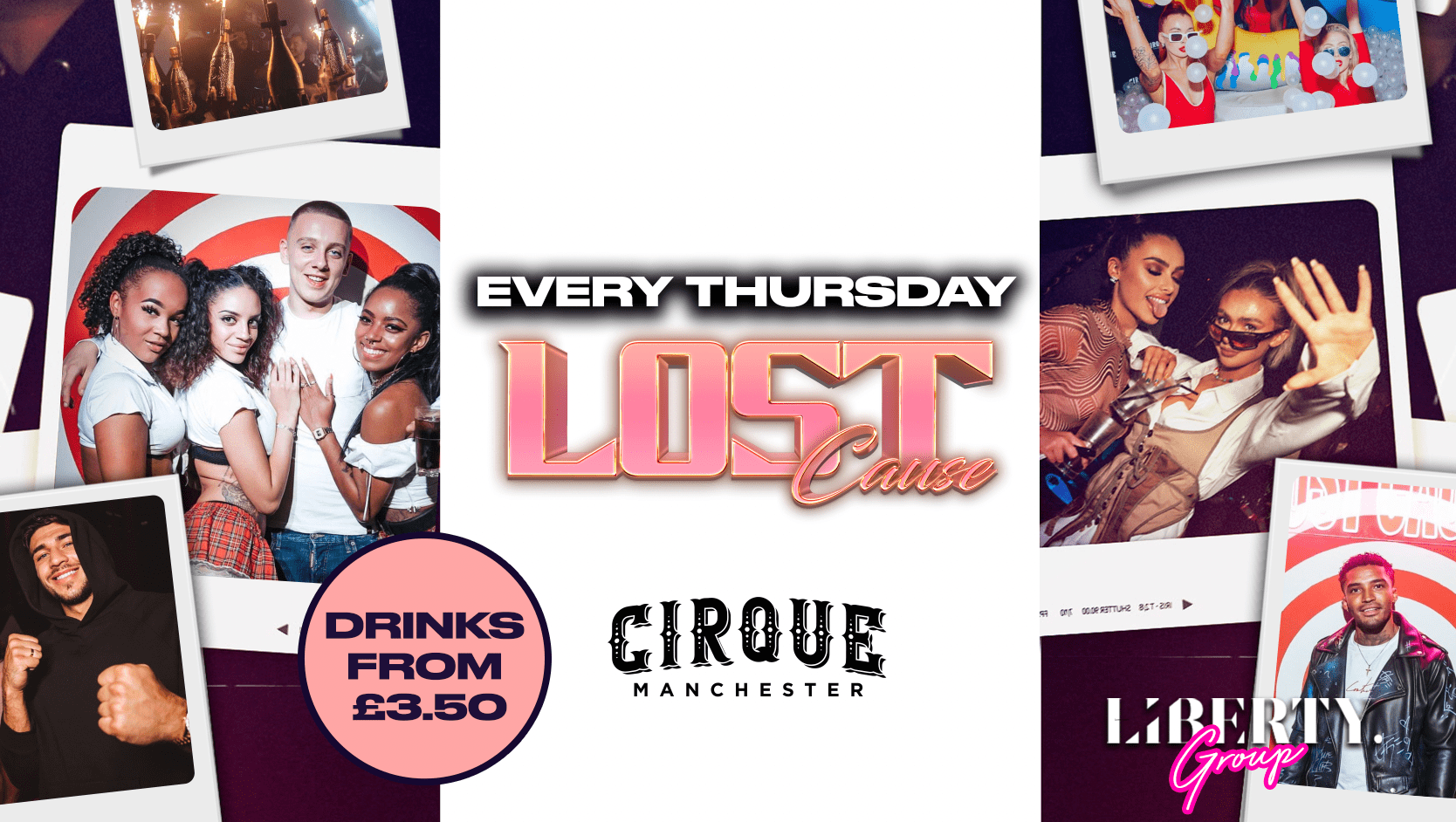 We host LOST CAUSE Manchesters biggest Thursday night  @ Cirque Manchester, Manchesters most exclusive and unique high end nightlife venue and is a globally known brand.