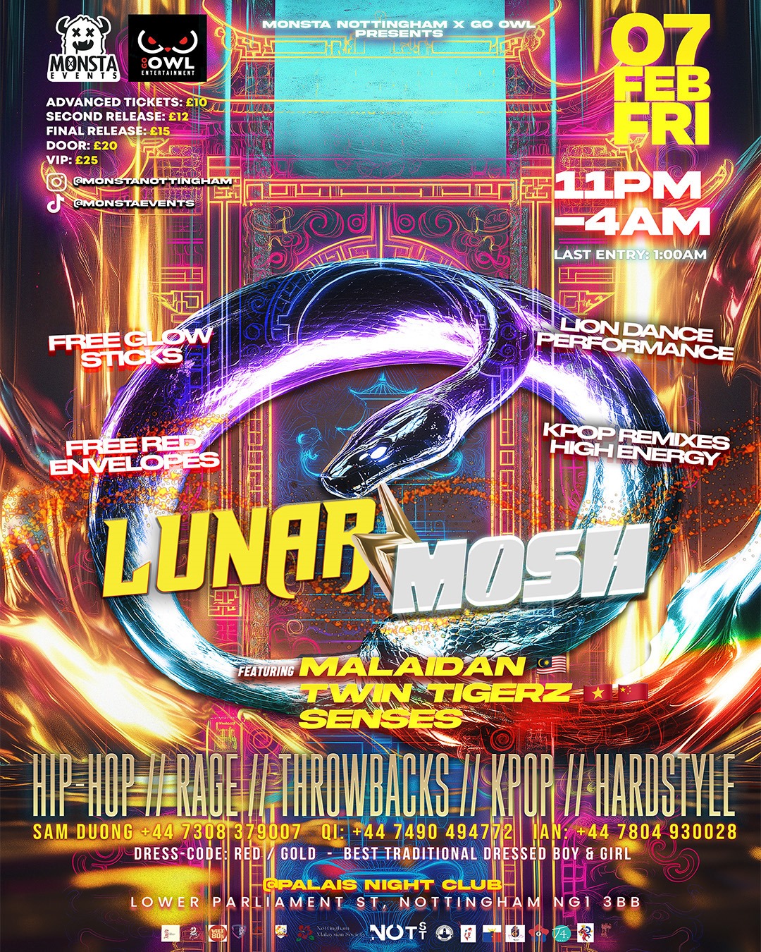🌟 MONSTA X GO OWL PRESENTS 🌟Nottingham’s BIGGEST Chinese New Year party is back and it’s the Year of the Snake! 🐍✨ Join us on 7th February, Friday night, at Palais Night Club MAIN room from 11pm-4am for an unforgettable celebration! 🎉