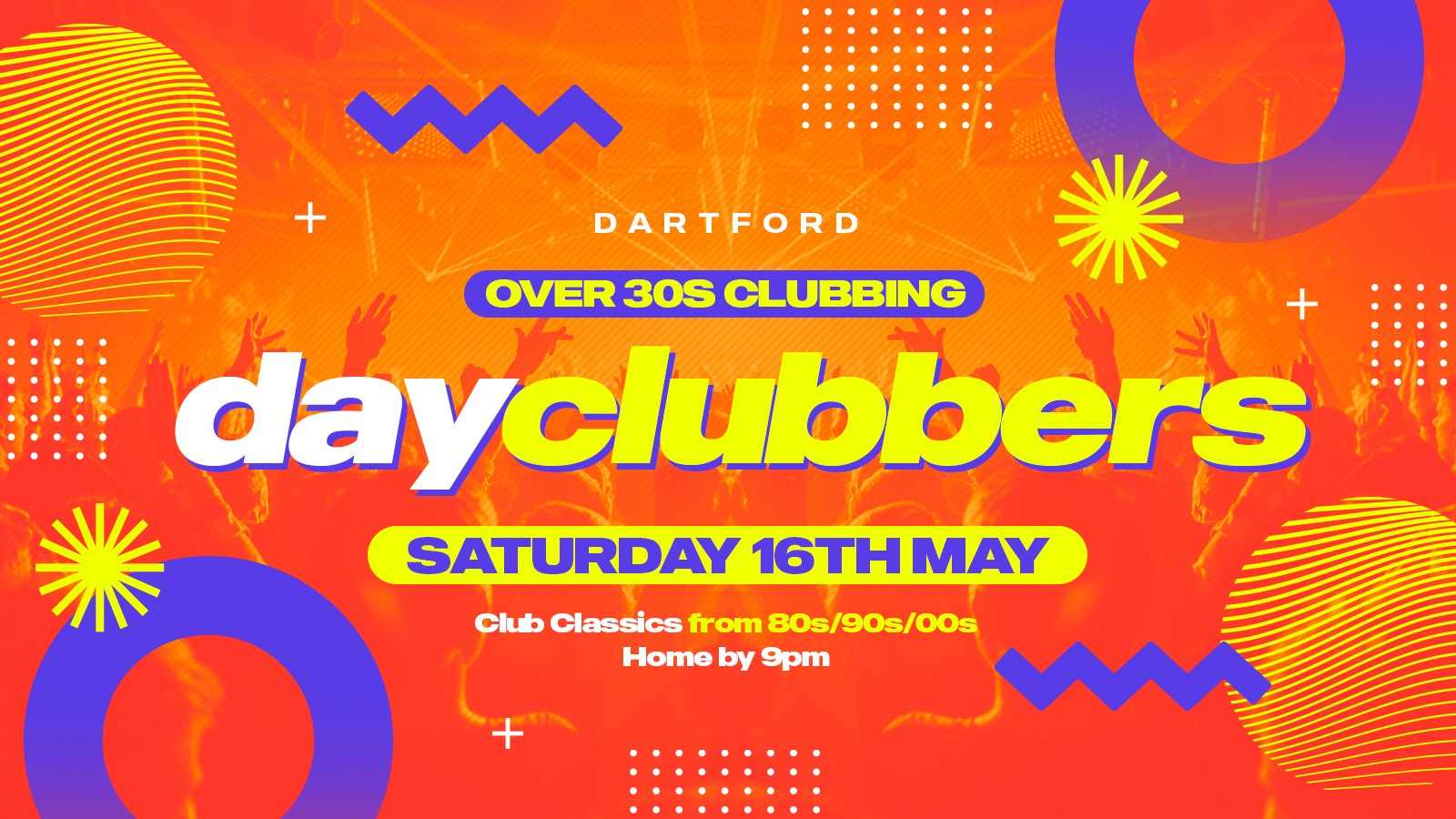 We create events for those who love music, dancing and being social – but don’t want the hassle, expense and following-day exhaustion of clubbing till the early hours.