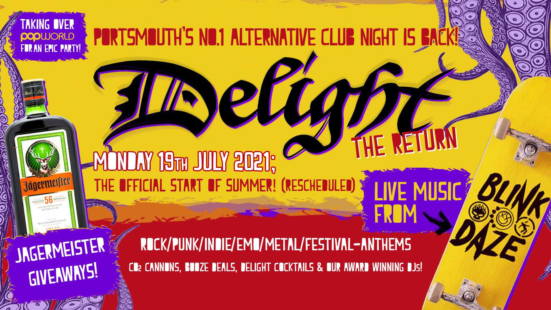 Delight is coming out of lockdown on the 21st of June, bigger & better than ever; and we have the mighty Blink Daze preforming LIVE!