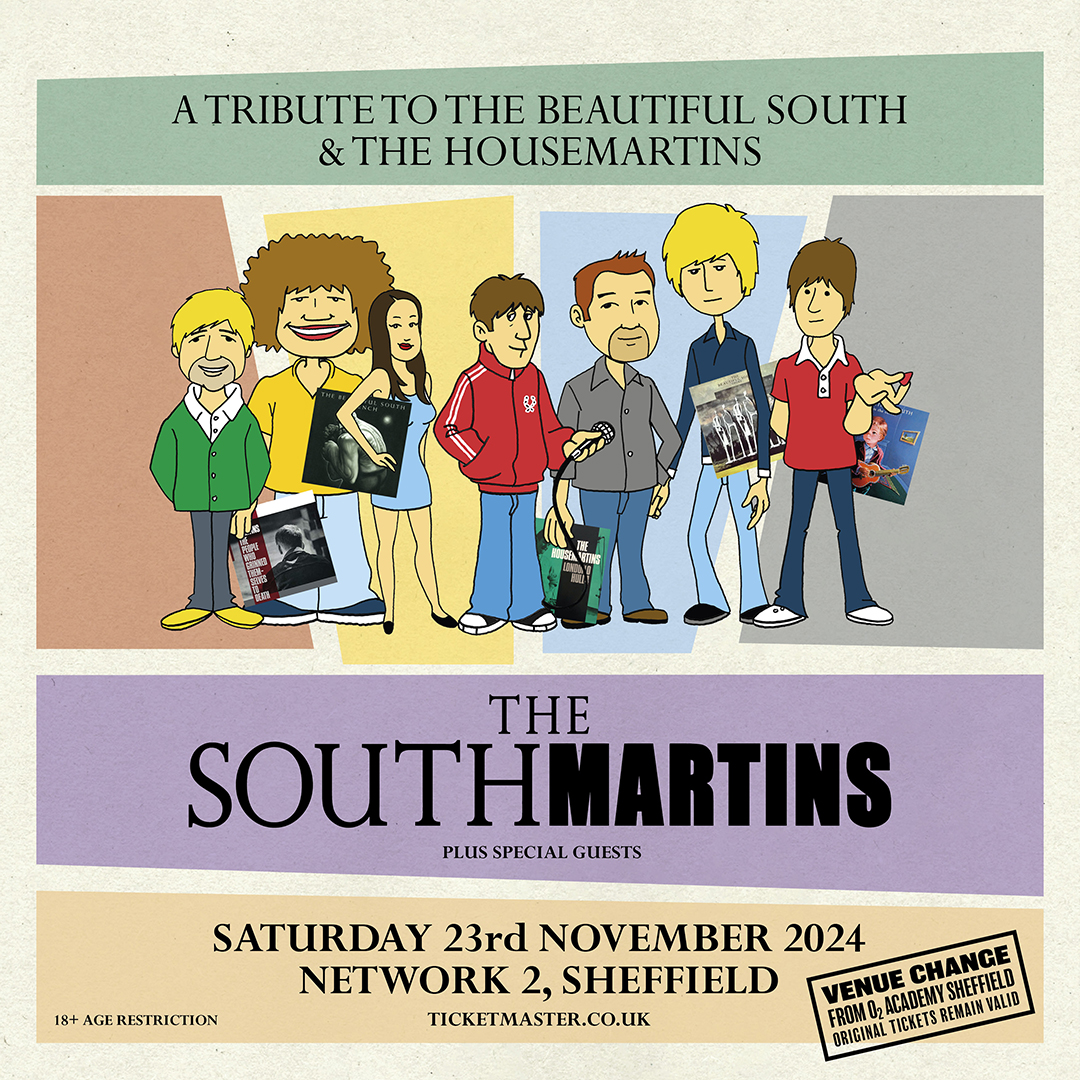 The Southmartins are a talented crew of musicians fronted by a vocal dead-ringer for Paul Heaton. They produce a lively take on the back catalogue of The Beautiful South and The Housemartins; expect to be treated to the likes of “Happy Hour”, “Perfect 10”, “Rotterdam”, “Don't Marry Her”, “Me and The Farmer”, “Song For Whoever”... and many more.