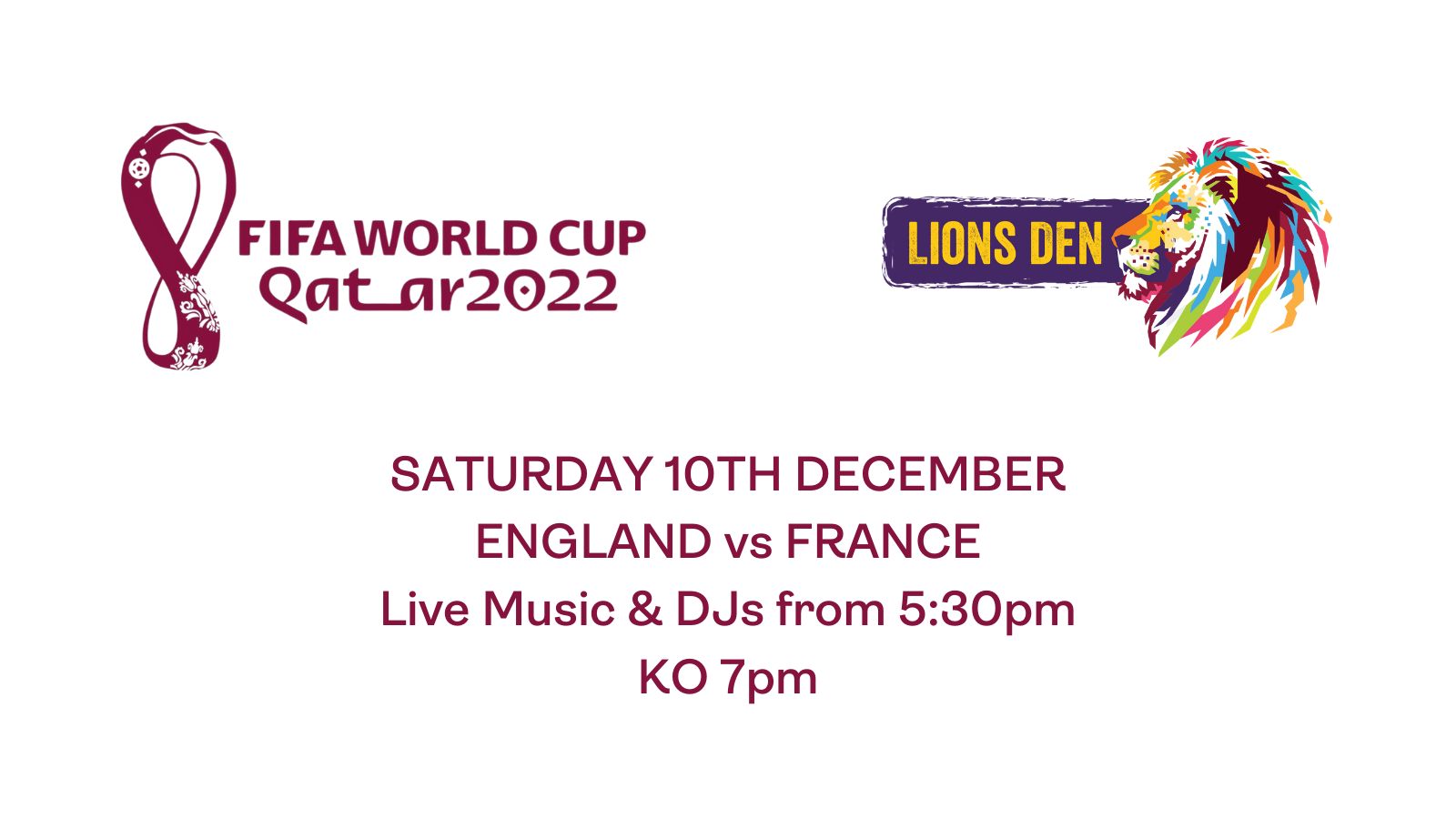 We'll have resident DJs and Live Music before and after the match plus special FX if/when England score!