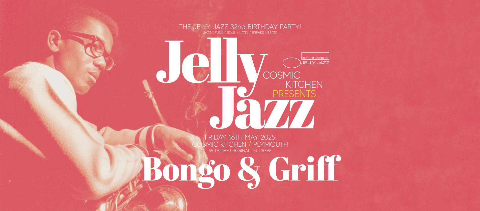 The irrepressible Jelly Jazz is back in Plymouth for its regular(ish!) session at the wonderful Cosmic Kitchen. Now in its 32nd year of playing just the best music...jazz, funk, soul, latin, breaks, and beats, Jelly Jazz celebrates its 32nd Birthday Party this May!