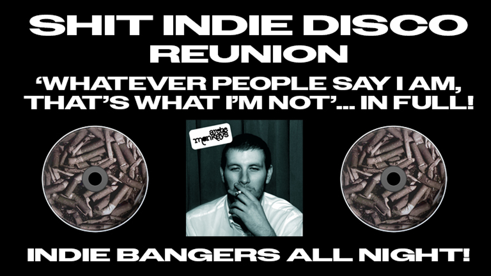 Expect to hear loads of Arctic Monkeys songs, their album in full, and bangers by Bloc Party, MGMT, Yeah Yeah Yeahs, The Strokes, Franz Ferdinand, LCD Soundsystem, Courteeners, Friendly Fires, Kasabian, The Libertines, The Wombats, The Killers, Lily Allen, The Kooks, The Killers, Florence and the Machine, Stereophonics, The View, The Maccabees, Kings of Leon, The Last Shadow Puppets, Two Door Cinema Club, Bombay Bicycle Club, Jamie T, Arcade Fire, The Cribs and loads more.