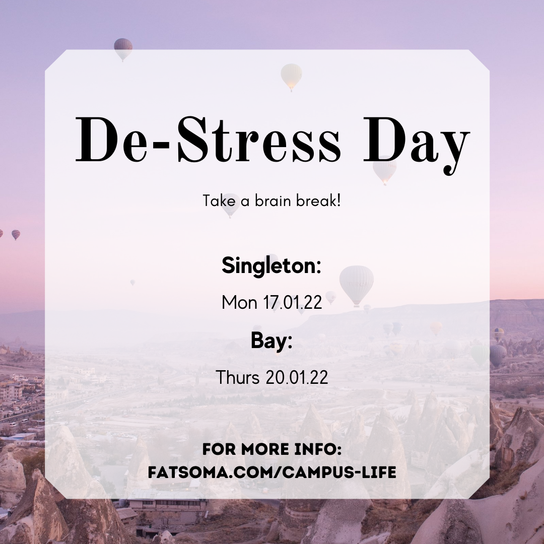 Stretching and Meditation: Why not join us for a relaxing hour of simple stretching exercises and a 20 minute guided meditation to wash away all those exam tensions. No experience needed - mats are provided!