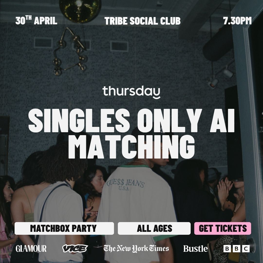 At Tribe Social Club Baixa Chiado, Thursday will be partnering on this evening with Matchbox - a software that uses relationship science to find your most compatible match at the party. Doors open at 7.30pm and close at 8.15pm - you will receive a questionnaire to fill out on arrival.