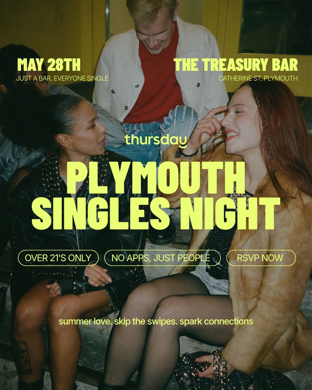 Hello Plymouth! It’s always a delight to see you. The gorgeous Thursday singles are heading to Treasury Bar on Thursday 28th of May for a flirtatious, fun-filled evening!