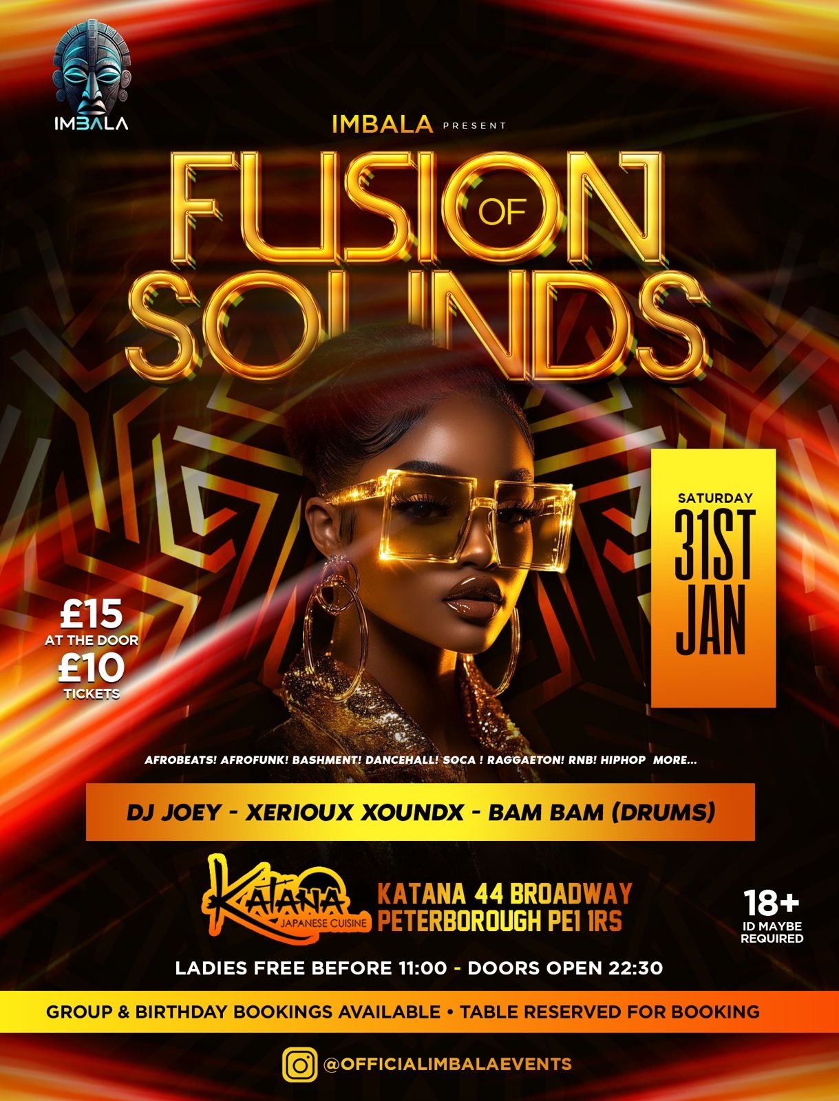 IMBALA presents Fusion of Sounds our once a month special every last Saturday of the month . F.O.S is arguably the most vibrant and energy packed event that celebrates good music like no other in Cambridgeshire.