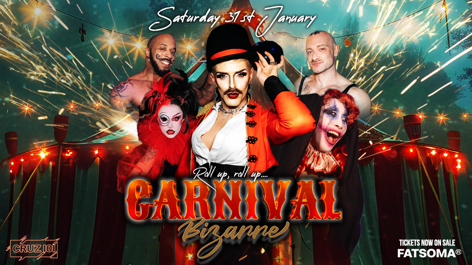 Cruz 101 proudly presents the return of CARNIVAL BIZARRE... where the main stage turns into a freaky display of bizarre going-ons. Courtesy of the the Cruz 101 entertainments team and some very special guests