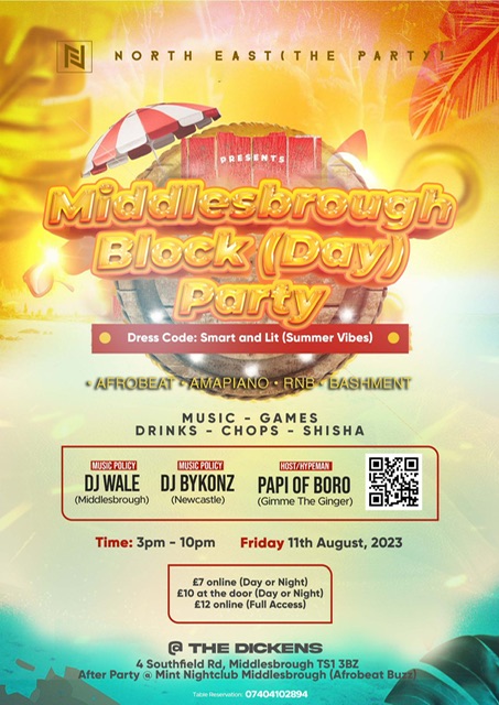 Middlesbrough Block (Day) Party 2023 is another day party and it's going to be lit... Just incase you're unable to attend 'AfroHangout Middlesbrough 2023' try not to miss this wonderful event. It's going to be one of the best ever. There will be an after party for this event, so you can grab tickets for both. Table reservations available.