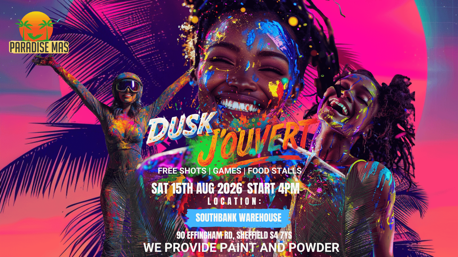 Sheffield, GET READY! We’re back — brighter, louder, and even more explosive than before! On Saturday, 15th August 2026, the legendary Southbank Warehouse transforms into a Caribbean colour storm filled with riddim, energy, and pure JOY! 🌴🔥💃🏾🌈