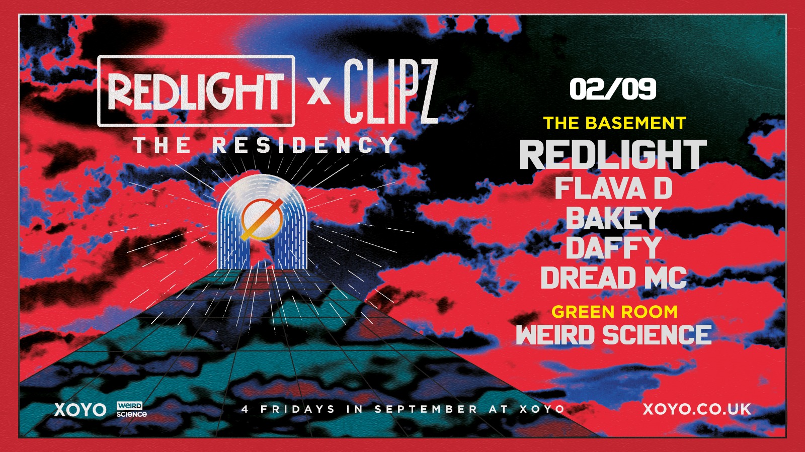 For over two decades, Bristol born DJ and producer Hugh Pescod has remained at the forefront of bass music, consistently producing high quality music via two monikers - Redlight and Clipz. This residency celebrates the brilliance of both across 4 weeks of shows in September, with guests appearances from the likes of Flava D, Bryan Gee, Scratchclart, My Nu Leng & many more!