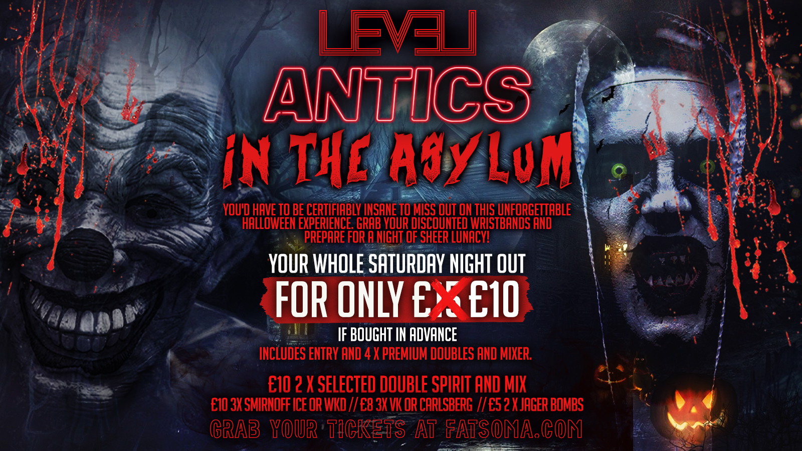 Join us for a night of spine-tingling fun at the Asylum! Get your discounted £10 advance wristbands now to enjoy a thrilling Halloween club night like no other. Don't forget to take advantage of our regular Antics drink offers and tickets!