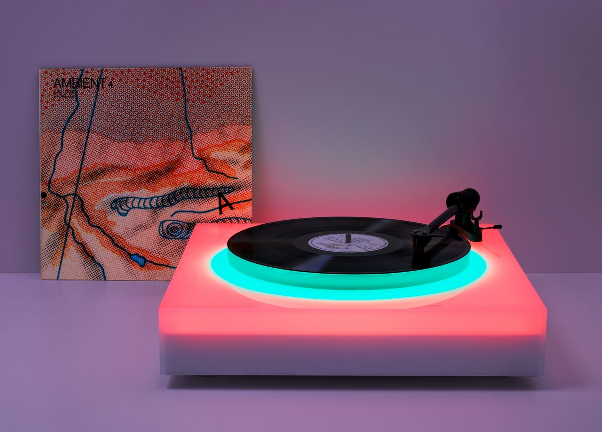 Join Gagosian for a daylong music program played on Brian Eno’s Turntable (2021), an acrylic record player fitted with LED lights that cycle through different color combinations, inside the exhibition Haunted Realism at Gagosian, Grosvenor Hill, London. Taking the show as a departure point, the lineup will feature nine recordings, including Eno’s Ambient 4: On Land (1982) and On Vanishing Land (2006), an audio essay assembled by the late Mark Fisher and writer Justin Barton. The program, which also includes musical selections by artists in the exhibition, evokes the lost futures of Marxist ideology by exploring the uncanny “non-places” of late capitalism, a strategy that Fisher also applied in his critical writing. The event is free and open to the public.
