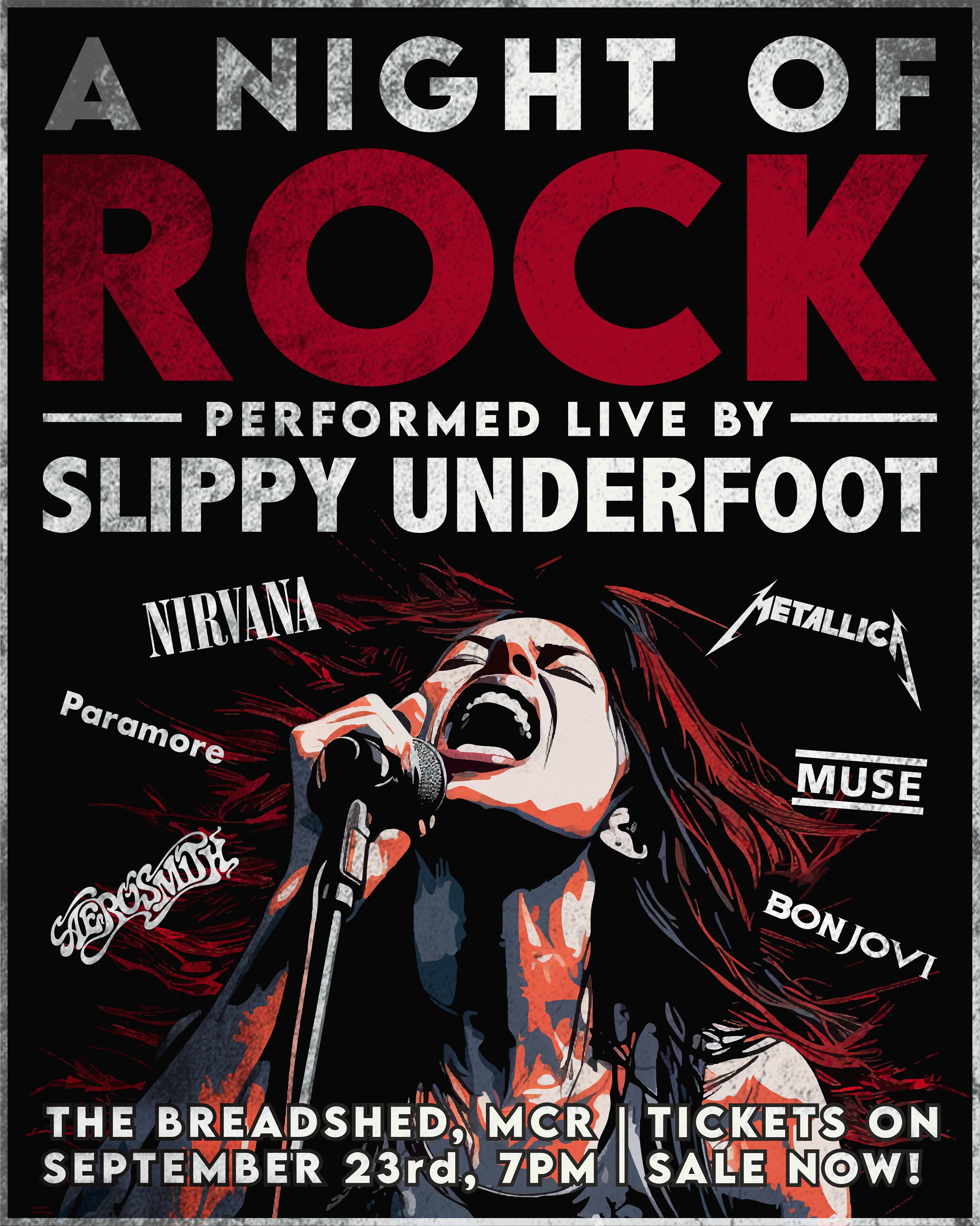 80's, 90's and 00's Rock /Emo/Pop-punk bangers delivered directly to the pleasure centre of your brain with live band SlippyUnderfoot ALL NIGHT LONG