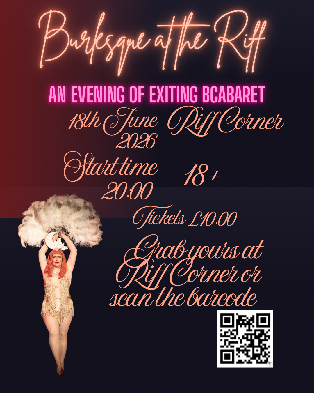 Seren Dippity is bringing Burlesque to the Riff Corner in Clevedon!A great night of Performers with Burlesque, laughs and song.