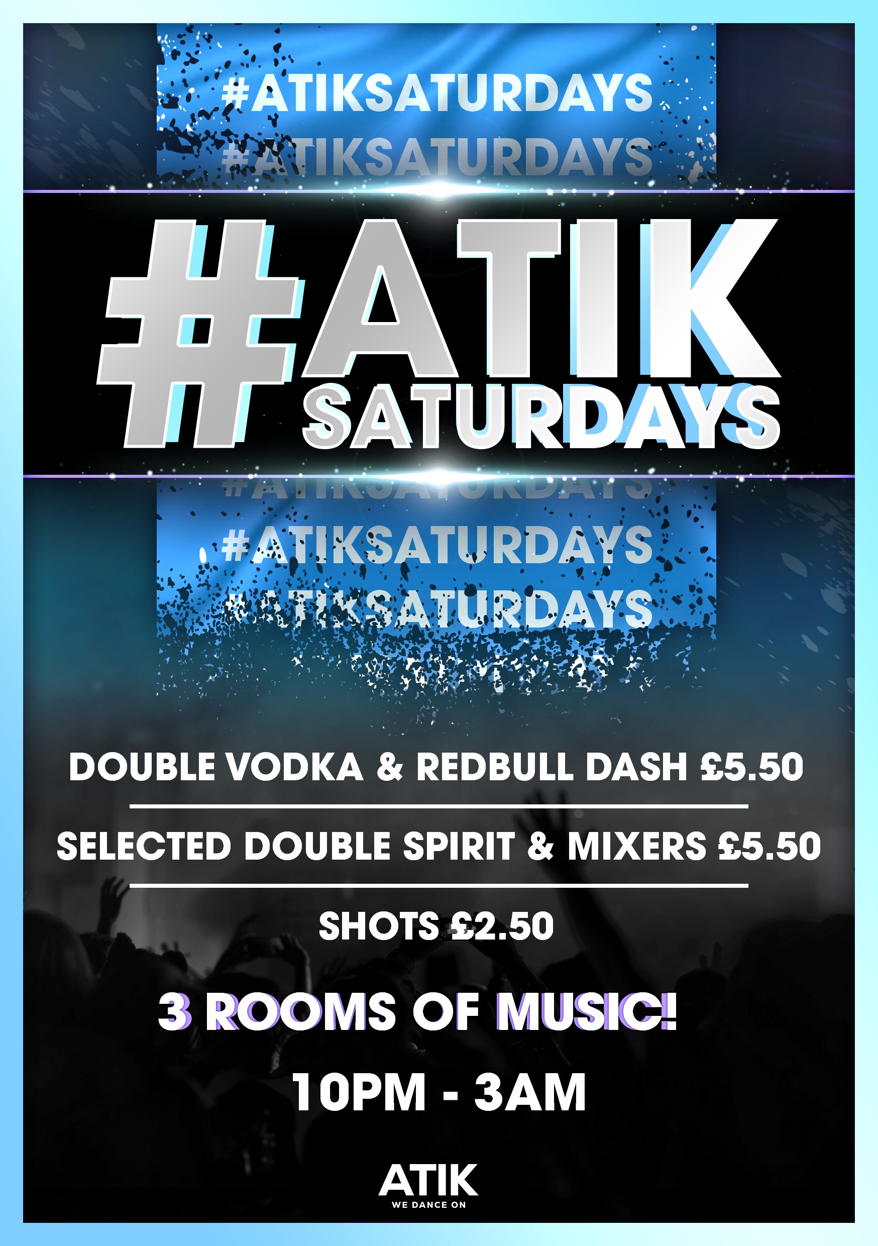 Whether you're celebrating, catching up with friends, or just living for the weekend, ATIK Saturdays bring the beats, the crowd, and the atmosphere to make your night unforgettable.