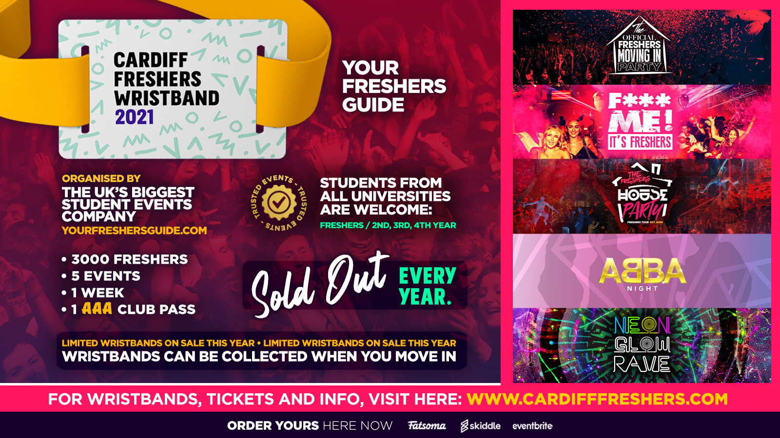 IMPORTANT: If you bought one of our Cardiff Freshers 2021 Wristbands your tickets are now valid for these events!