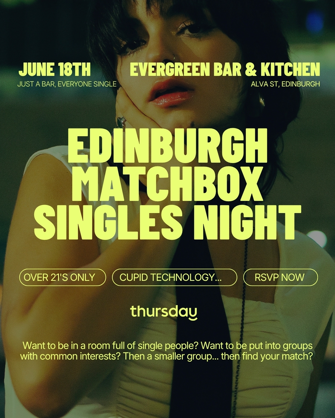 We're hosting our next singles event in EVERGREEN BAR & KITCHEN ON ALVA ST and if you missed out on our last matchmaking event.. now's your chance! Paired with some very funky cocktails to get the conversations going this is going to be a fun one!