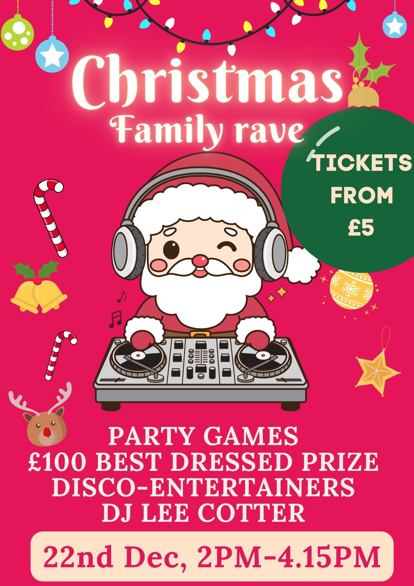 DJ Santas helper : Our live DJ will be spinning the hottest tracks, mixing Christmas tunes with family favorites to keep the dance floor alive with energy. From Frozen to the latest hits, there’s something for everyone to groove to!