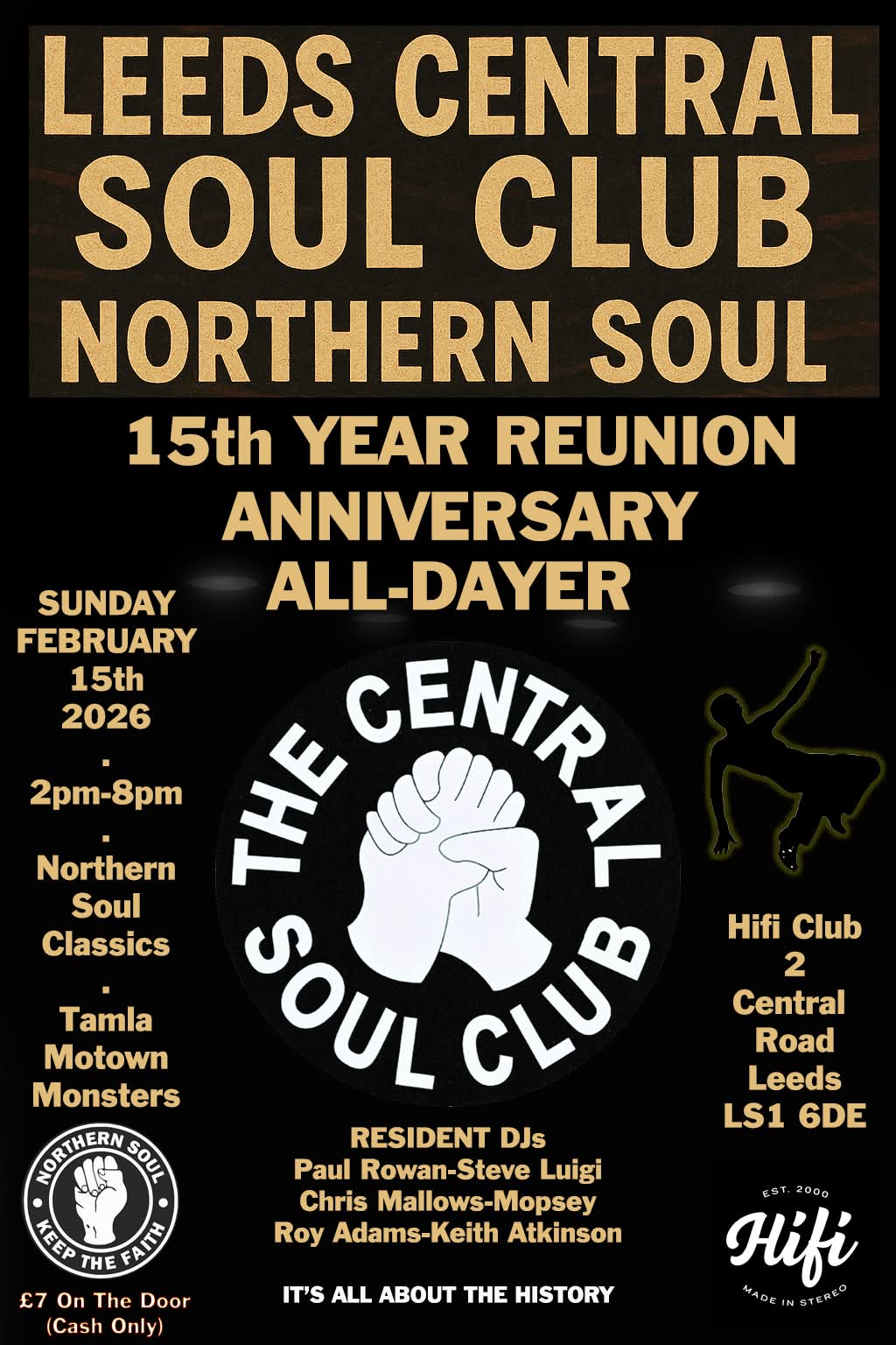 Leeds Central Soul Club 15 years of Reunions Anniversary All-Dayer