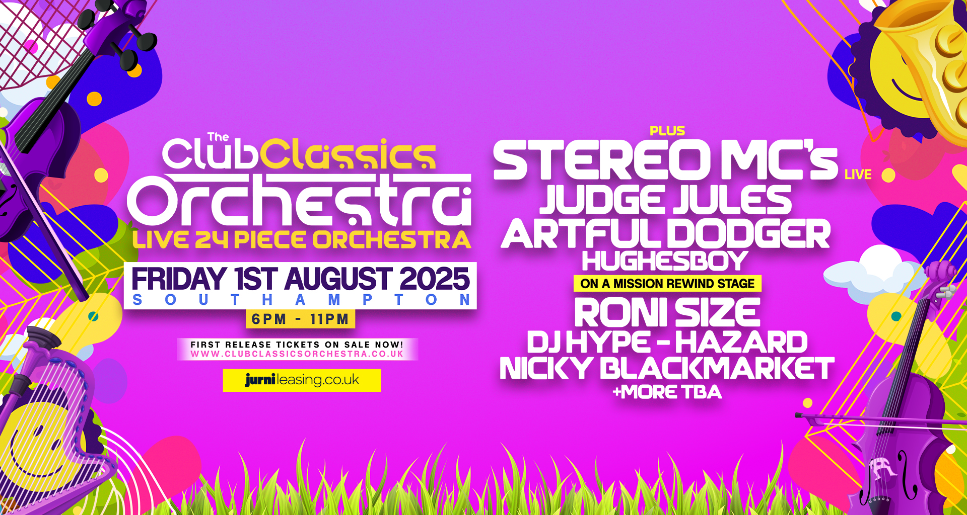 Outdoor Concert, SouthamptonGet ready for the ultimate summer night out as Stereo MC’s close out the show with their high-energy hits, alongside the legendary Judge Jules & Artful Dodger, all backed by our incredible 24-piece Club Classics Orchestra! This is an unmissable night of live dance music, where timeless anthems come to life with a spectacular orchestral twist.
