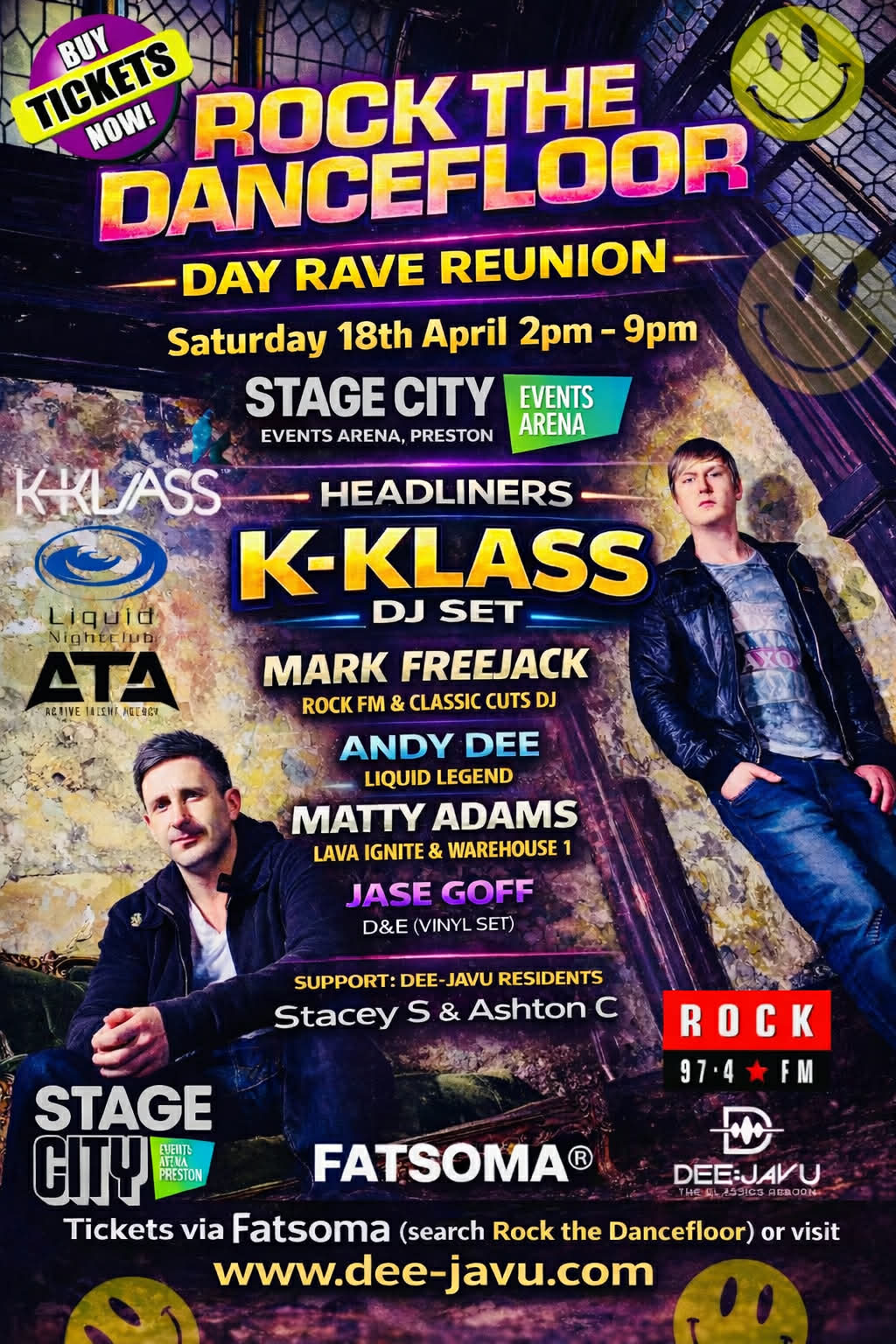 Rock The Dancefloor brings together the soundtrack of a generation — Clubland classics, piano house, 90s trance anthems, Ibiza vibes, and Rock FM bangers — all under one roof for an unmissable day rave reunion.