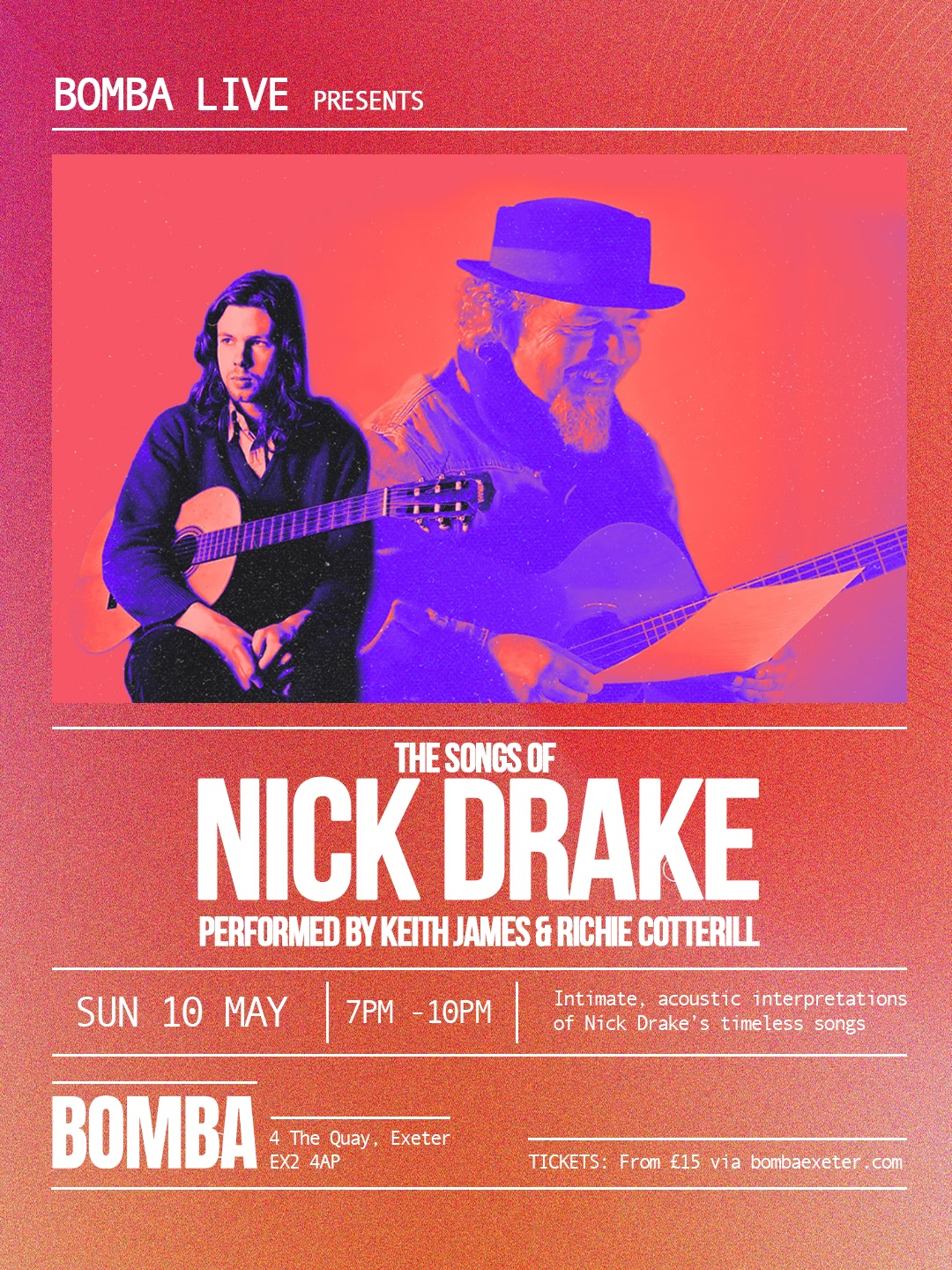 Keith James is widely regarded as the most trusted interpreter of Nick Drake’s catalogue. He has spent decades performing these songs with care, accuracy and deep understanding. His performances are known for offering genuine insight into the music rather than simply recreating it.