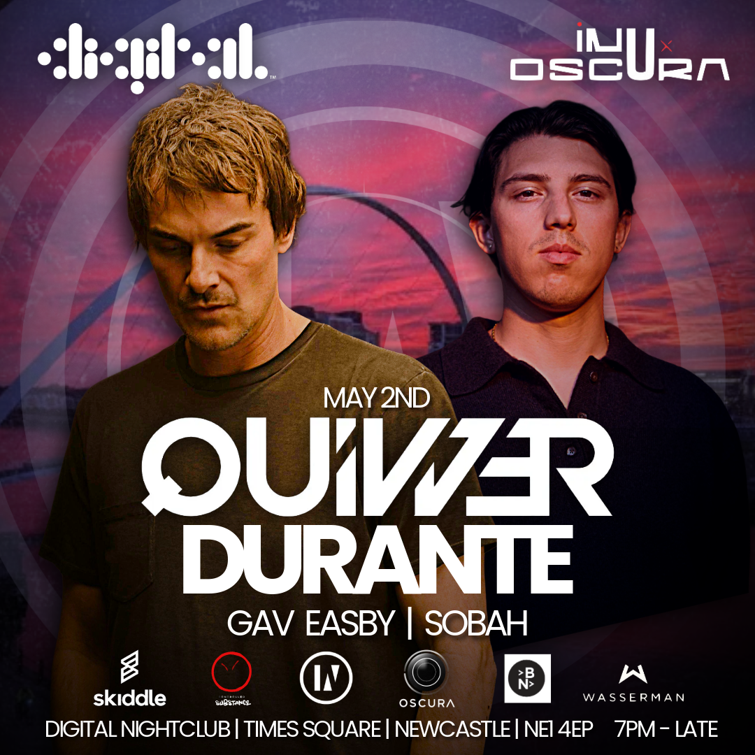 inU x OSCURA are back for a heavyweight May Day Bank Holiday Double Header in Newcastle & Leeds starting on the 2nd May at Digital, Newcastle, welcoming one of house music's most enduring and respected figures: Quivver, with rising Star Durante!!