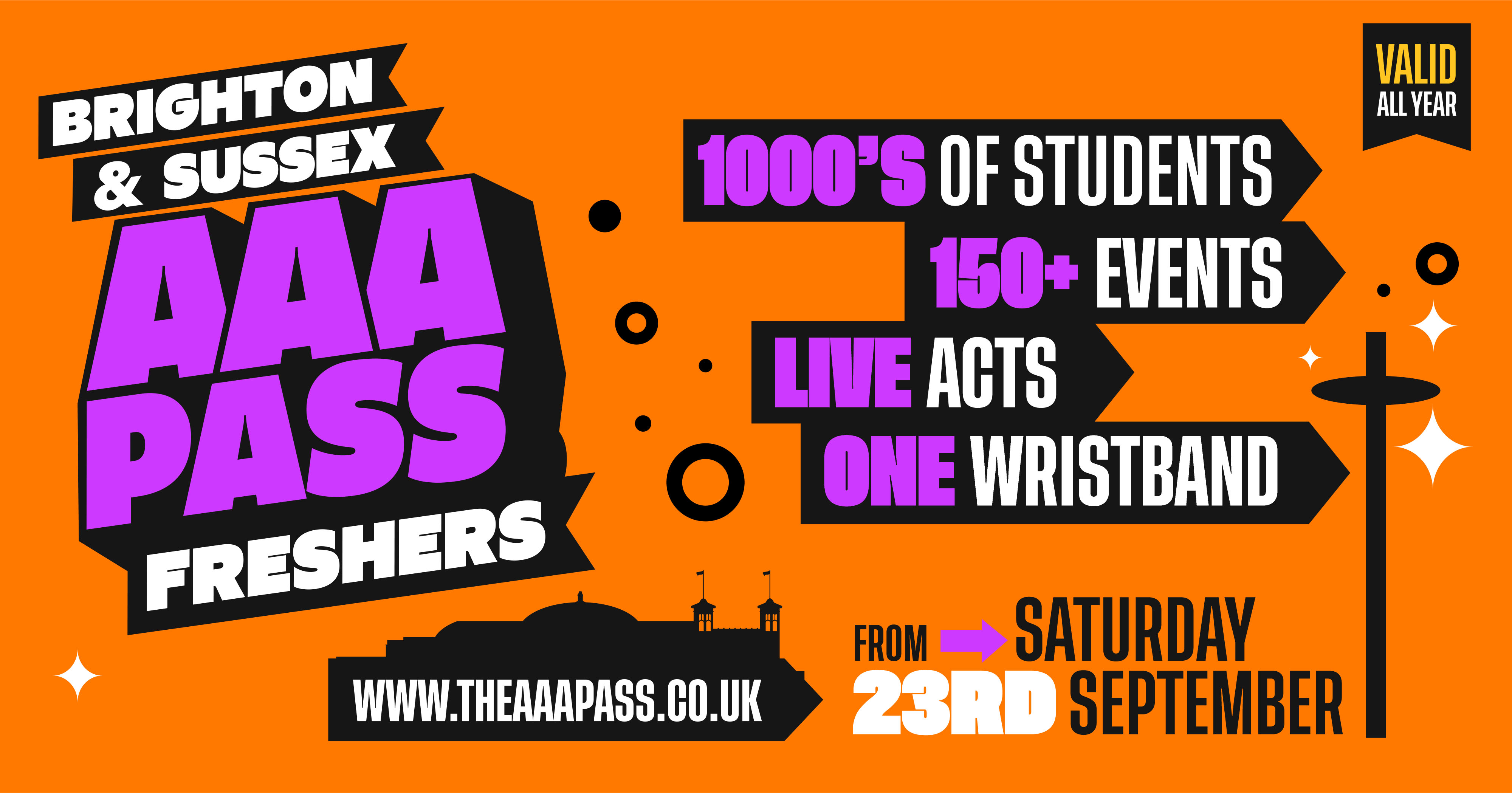 Having delivered over a decade of sold out events, the AAA Pass is the ultimate Freshers' Pass for Brighton students.
