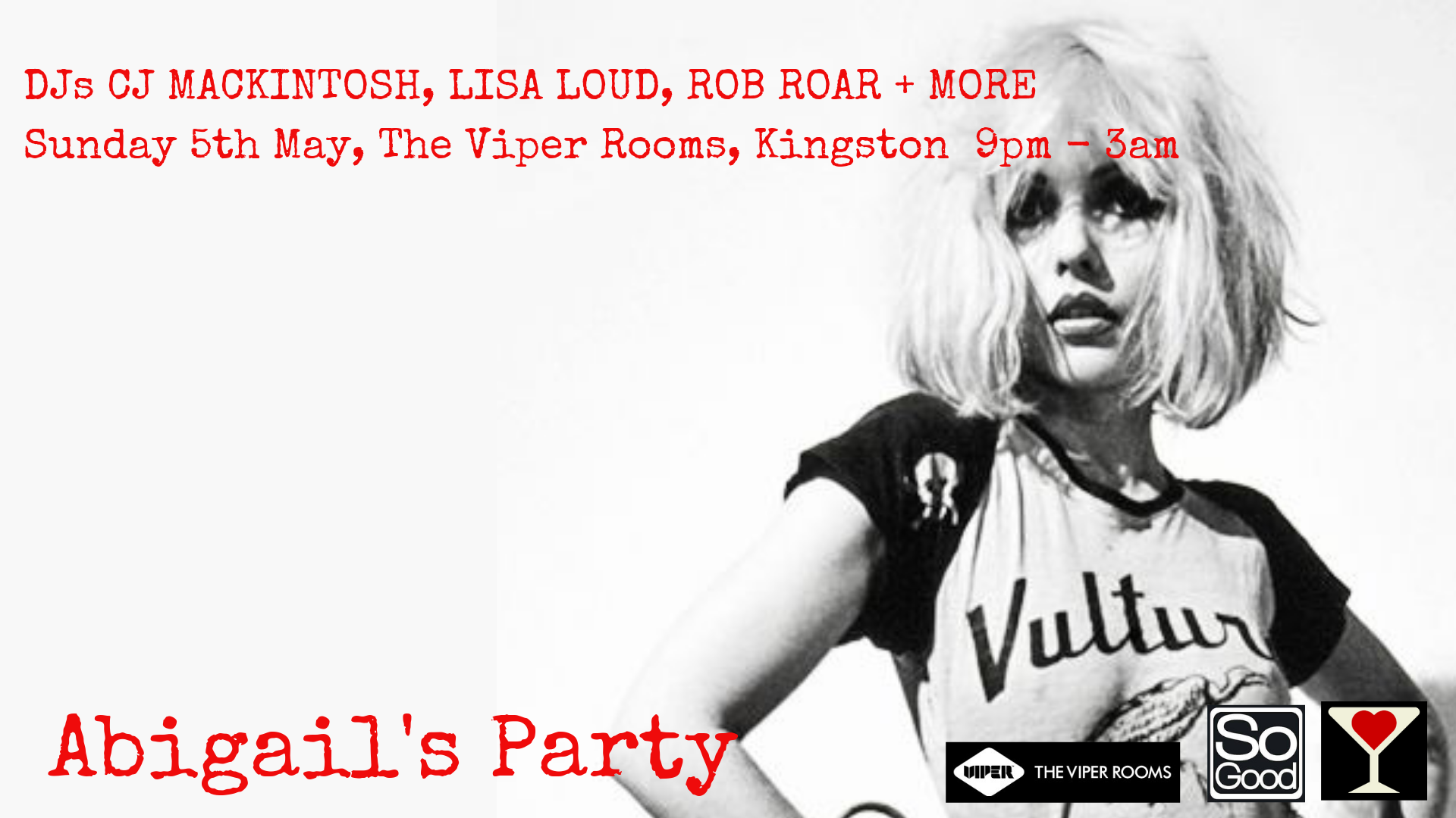 Whatever you want to boogie to - we’ve got it covered! House, Disco, Soul & Funk, there’s a groove for everyone at Abigail’s Party. Join us at The Viper Rooms on May 5th for our Big Bank Holiday Bash for the slightly more grown-up party goer.