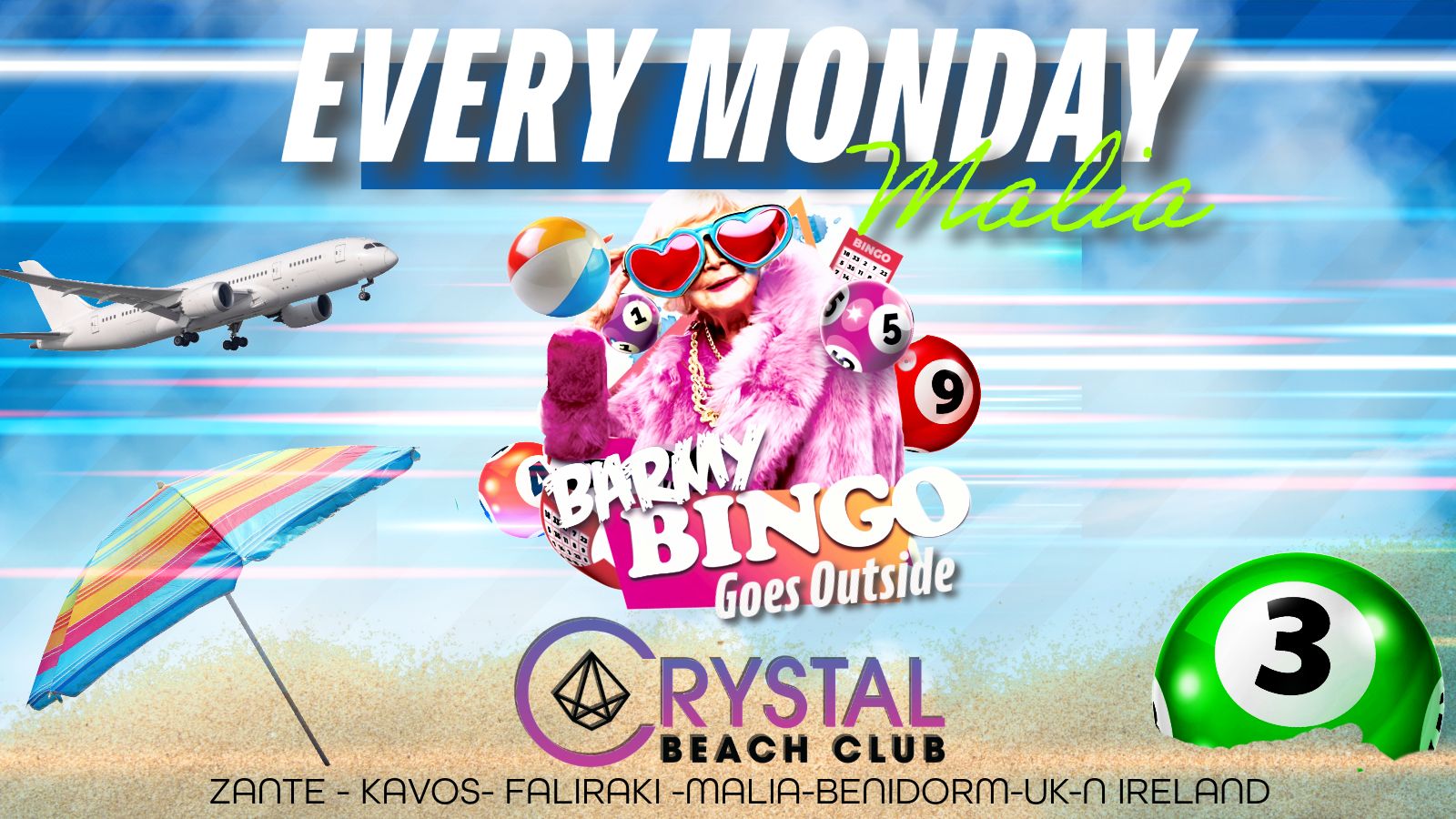 Barmy Bingo goes outside for the first time! The Barmy army are coming to Crystal Beach Club, Malia, THIS SUMMER! ☀️🎱 The best night of your Malia 2025 holiday guaranteed!!
