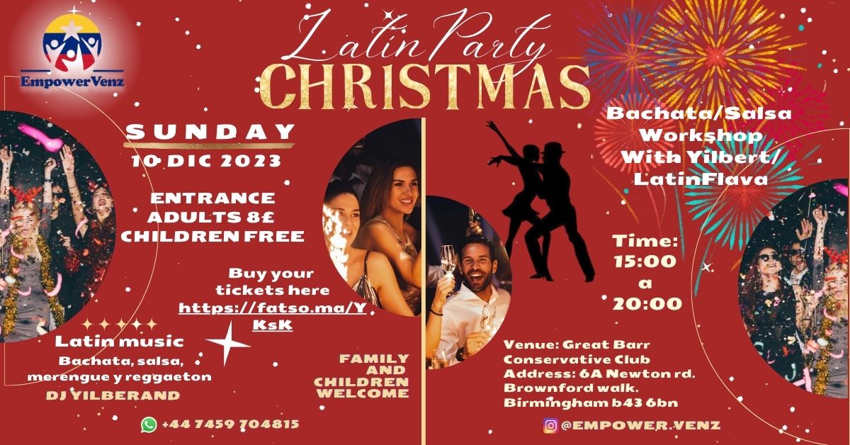 Come to our Christmas Latin Party with your family, children, and friends. Get to know and enjoy our traditional music and dance and have a special day full of happiness and joy living a different cultural experience.