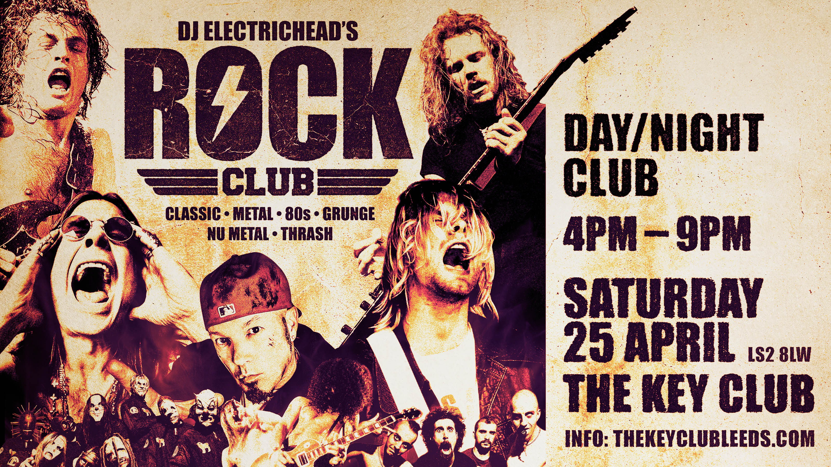 DJ Electrichead’s Rock Club takes over The Key Club- Leeds’ only full-time dedicated rock and alternative venue - for an afternoon / evening of wall-to-wall anthems, massive riffs and zero filler.