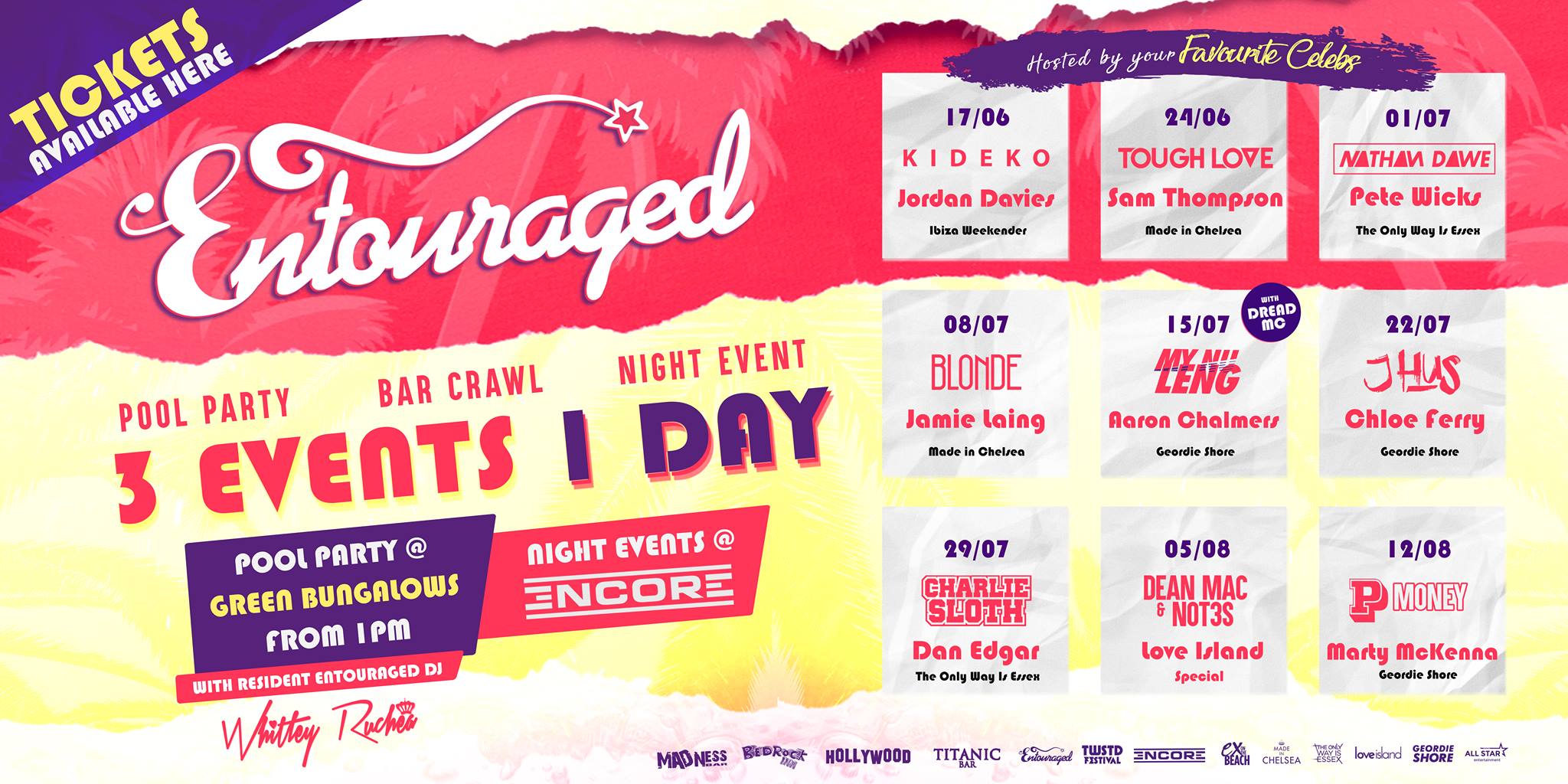 Entouraged is Napa's only all day event, running every Saturday with your favourite Uk celebs and Artists.