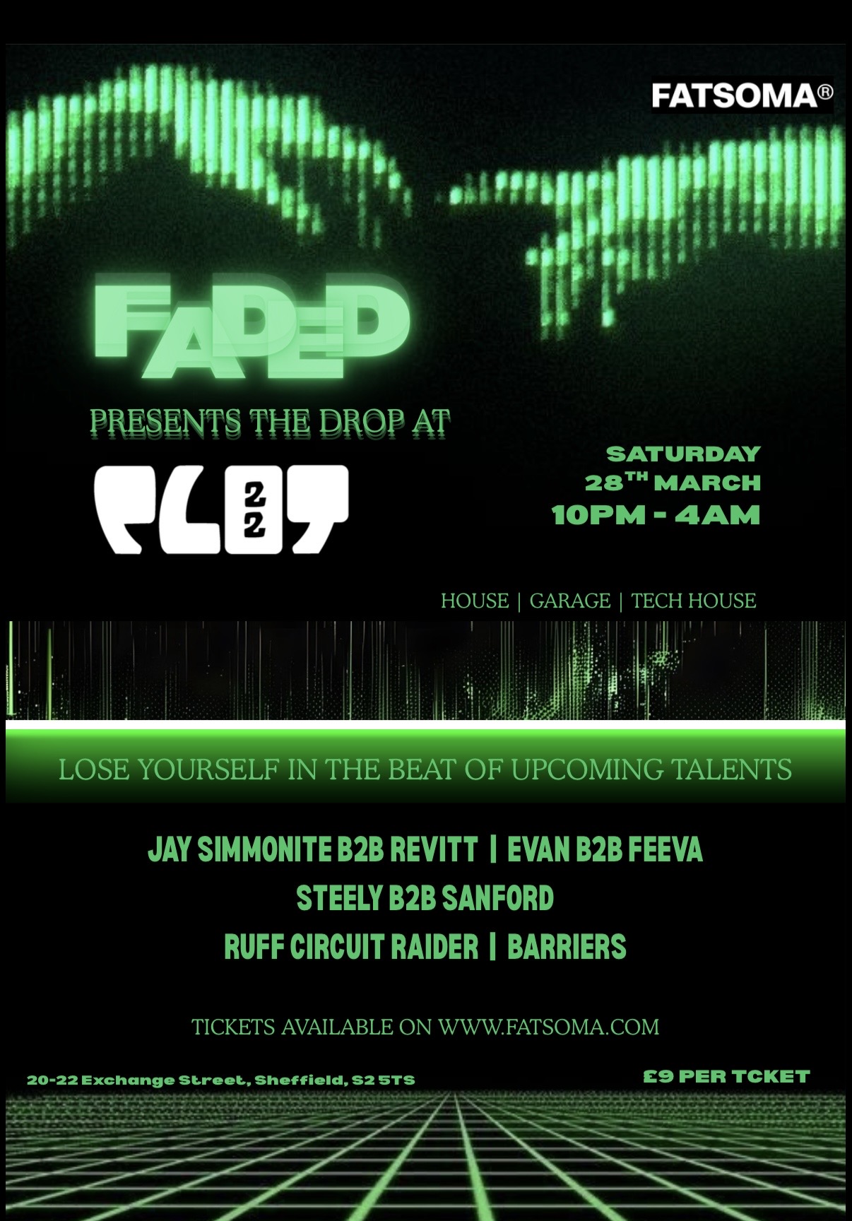 FADED EVENTS will bring you top quality parties in an around Sheffield. Expect house, tech house, garage and hard house