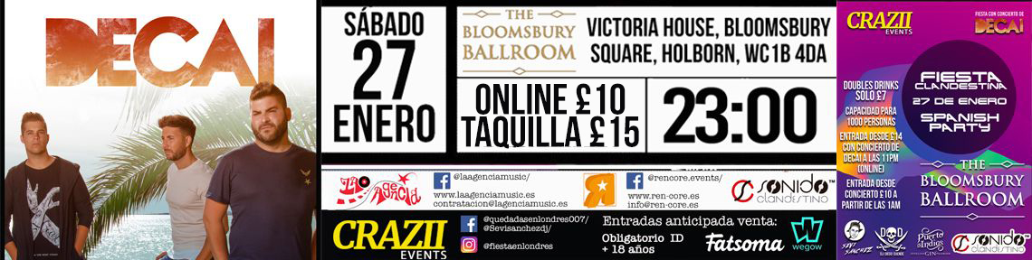 El 27 de Enero arrancamos un proyecto con mucha ilusión en Londres. Conciertos de grupos conocidos en España + Spanish Party en el centro de Londres. En Holborn. Hasta las 3.00AM