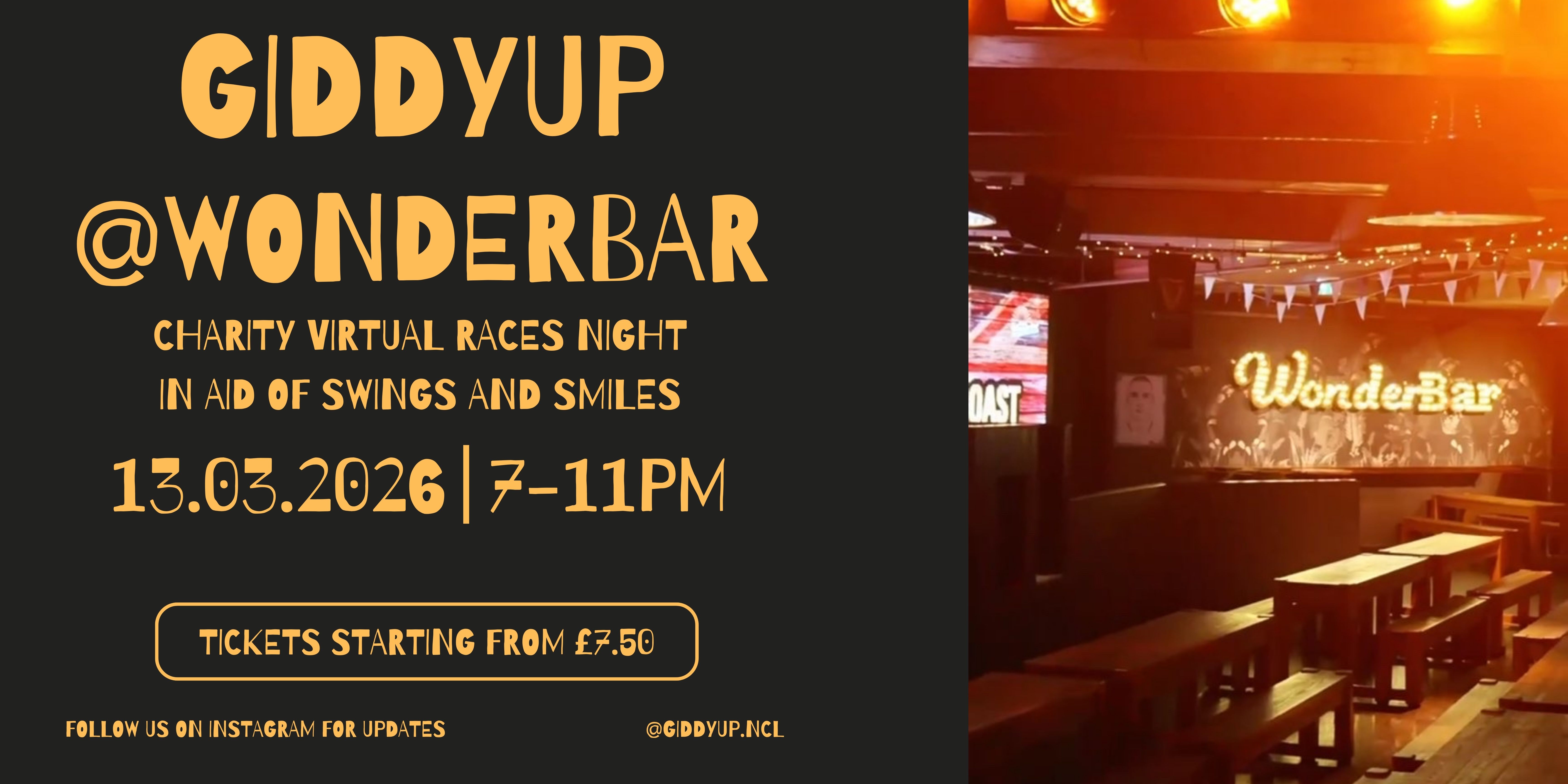 Follow GiddyUp@Wonderbar to get notified about news and updates, first.