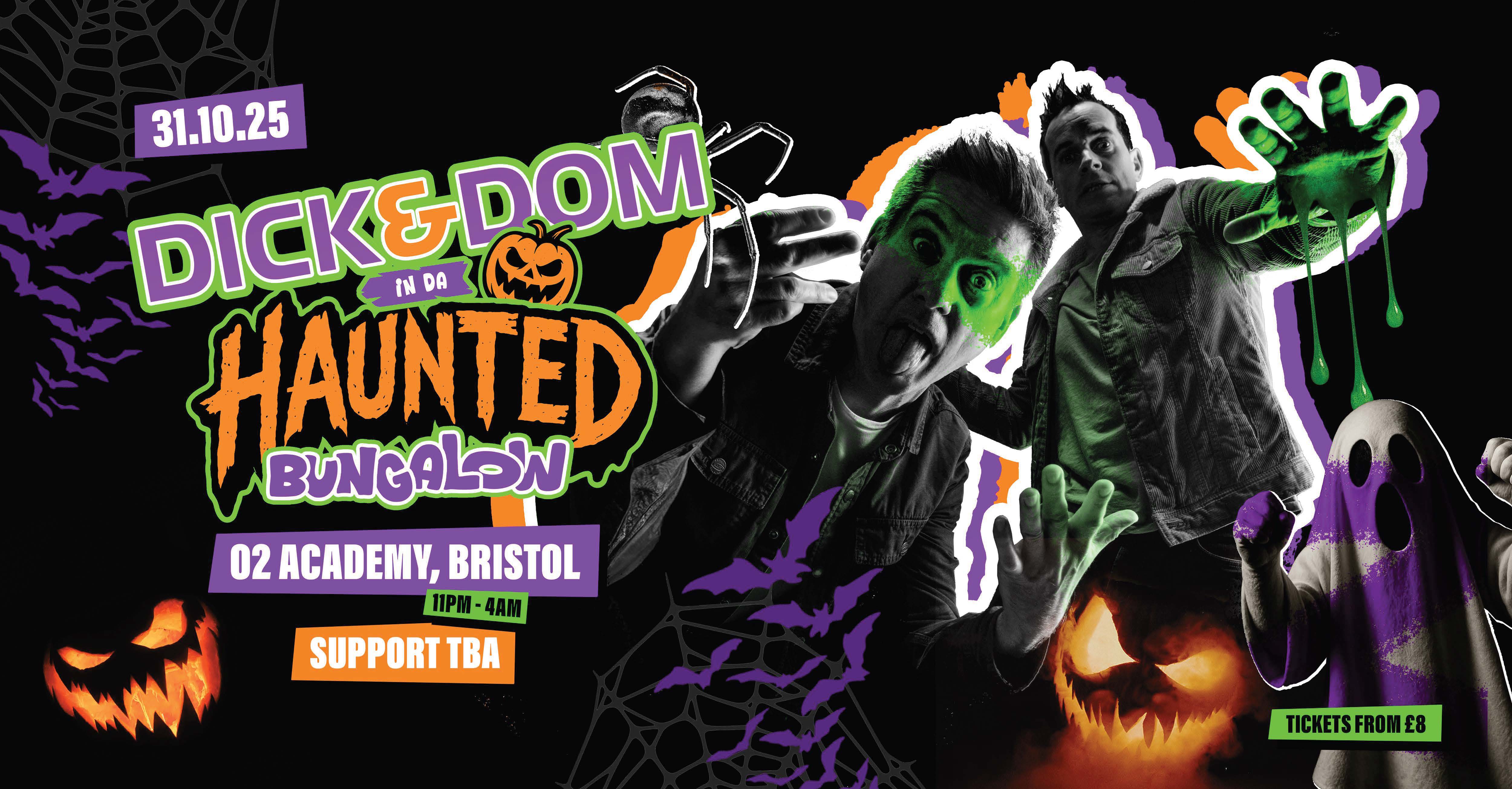 BOGIES!...But make it spooky! Dick and Dom are bringing their huge creamy muck muck rave to O2 Academy Bristol this Halloween. Swapping their bungalow for a haunted house, expect non-stop bangers, massive ghostly decor and absolute insanity from the naughtiest boys.