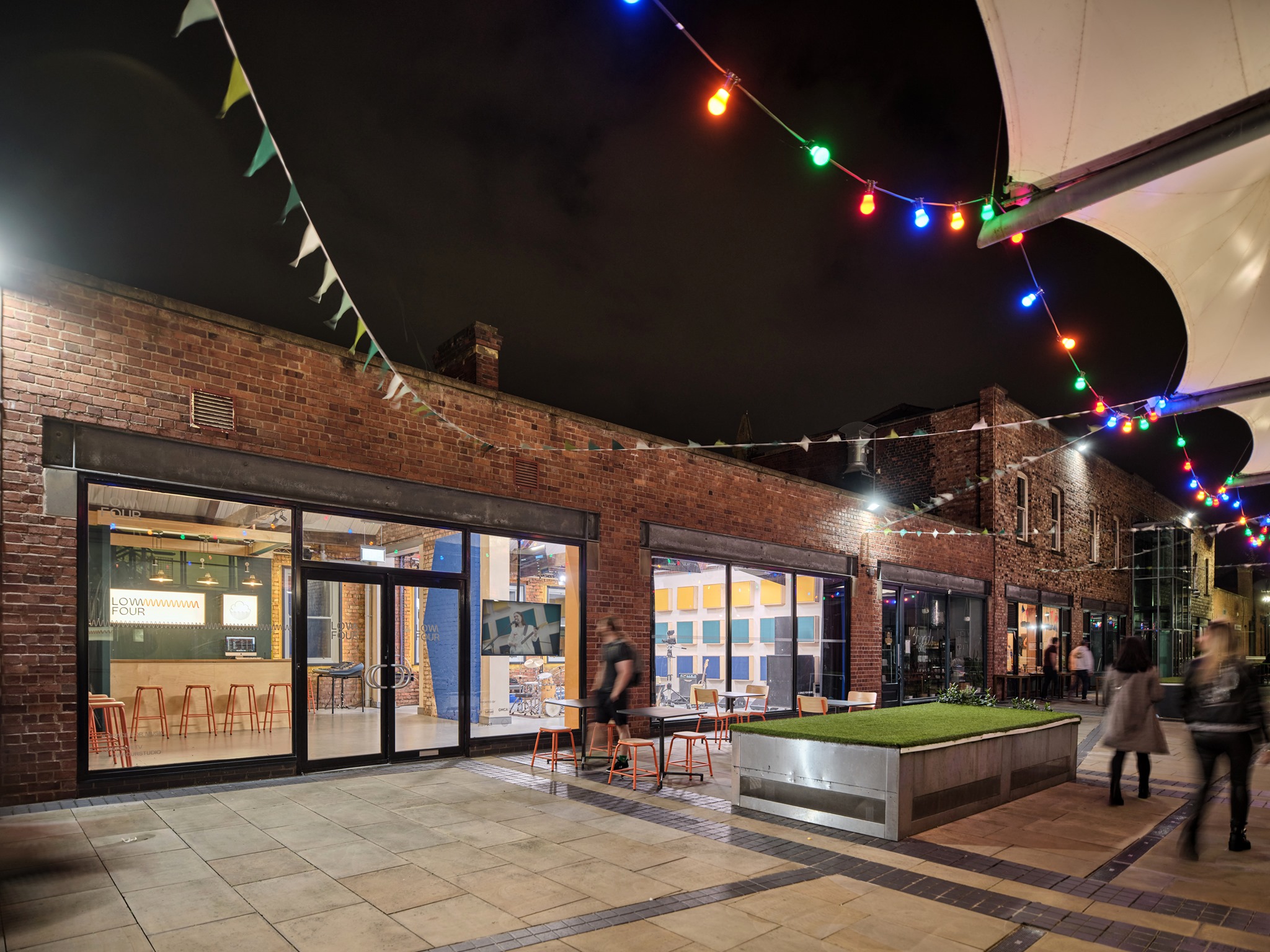 Low Four is a live-streaming music TV platform, recording studio, music venue and Cloudwater bar, located on Deansgate Mews at the Great Northern Warehouse.