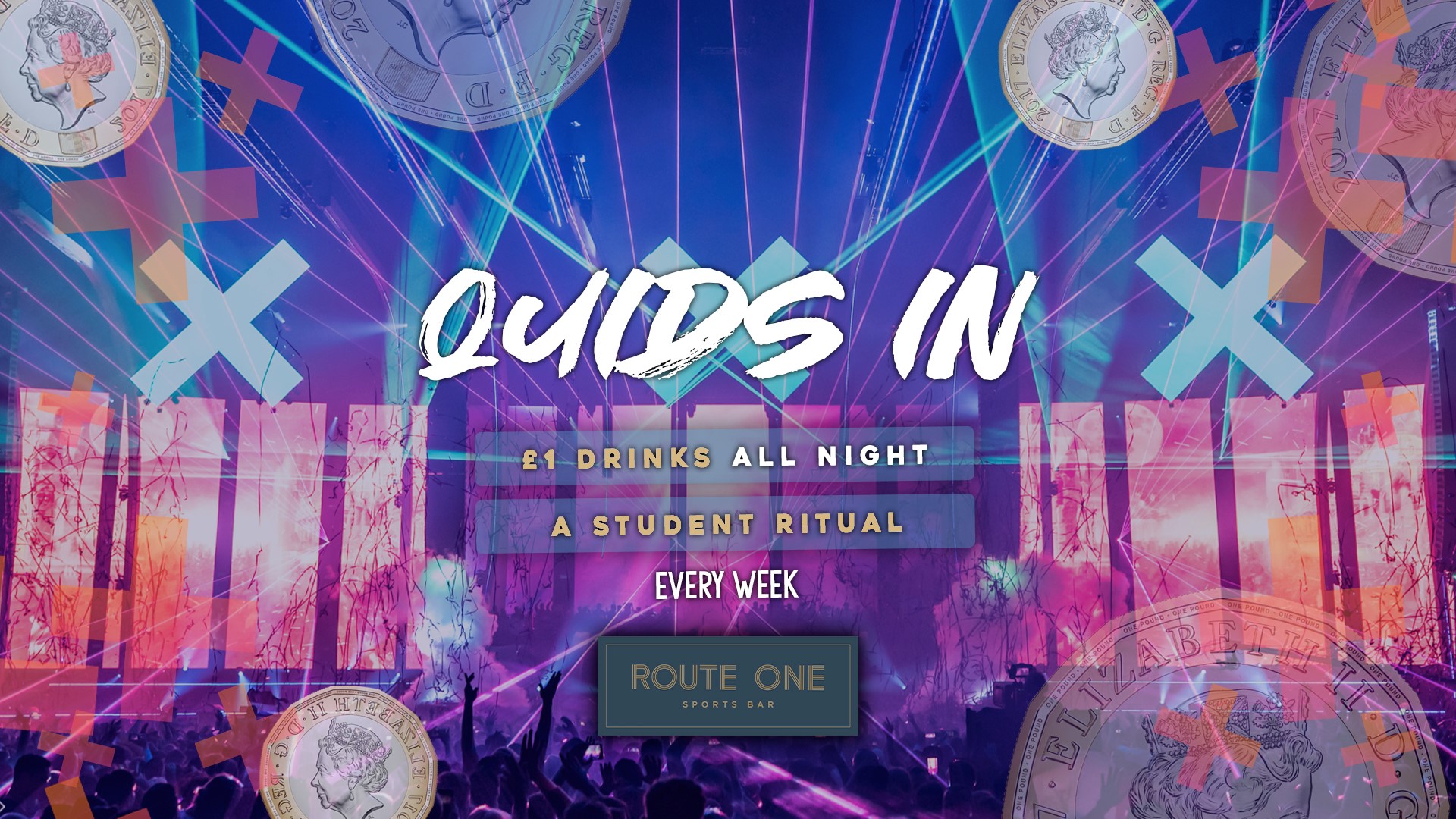 This September Quids In comes to Nottingham! The student ritual is here, running EVERY WEEK at Route One! £1 J-bombs all night long and a mix of House, pop, & student anthems make this the perfect student night!