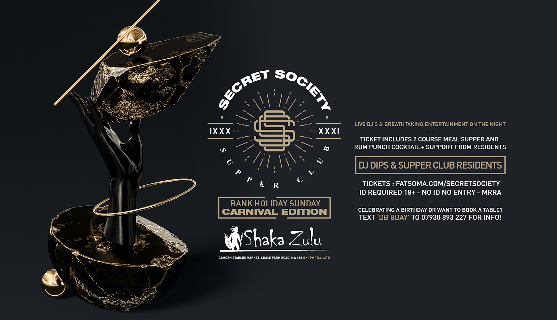 Socially distanced Supper Club events in the heart of London! Featuring entertainment, delicious cuisine & unmatched settings - all in compliance with government directives. The new way to spend an evening out is HERE - join the trend & become a member of the Secret Society..
