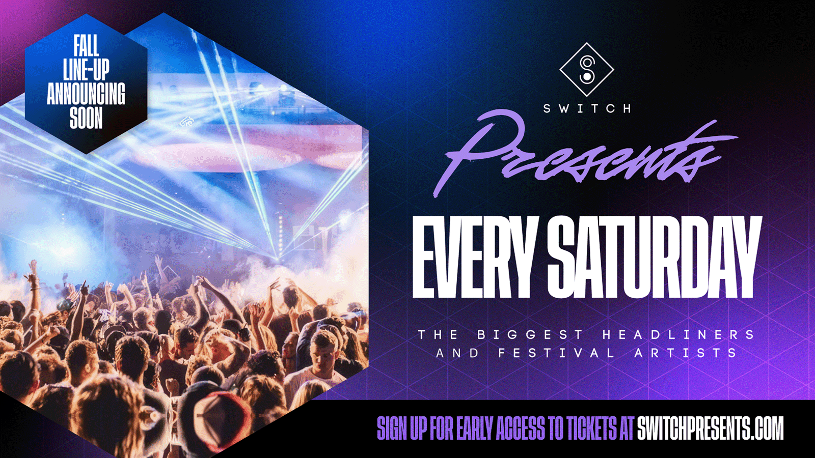 Follow Switch Presents and get notified when their new events go on sale.
