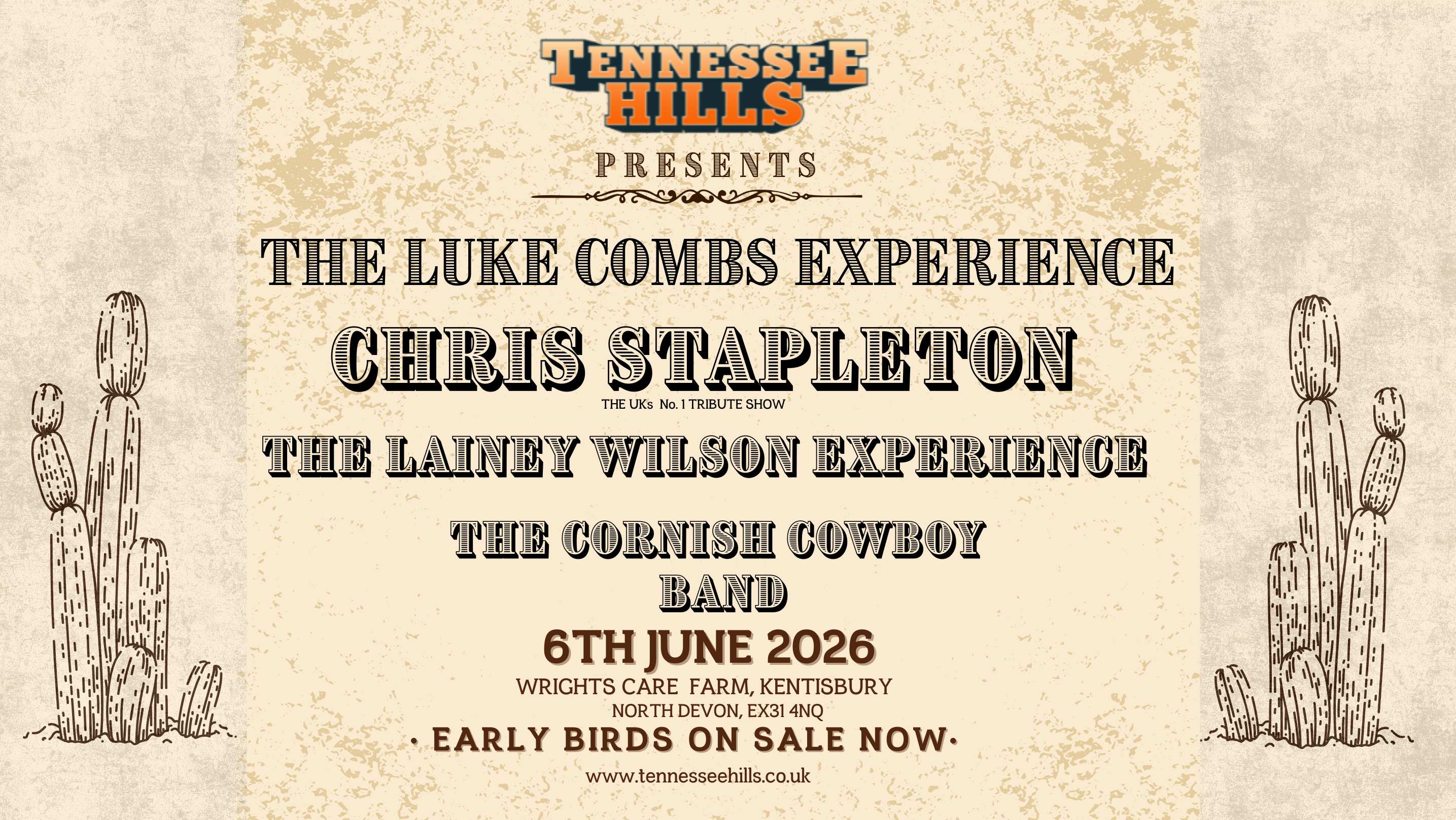 The lineup next year is AWESOME! We'll be announcing more as the weeks go by but for now get your super early bird tickets for only £28.50 and no booking fees! We've also released some stunning glamping options, see our soccials for details! you can booke everything you need for the perfect country weekend away in North Devon via our website www.tennesseehills.co.uk